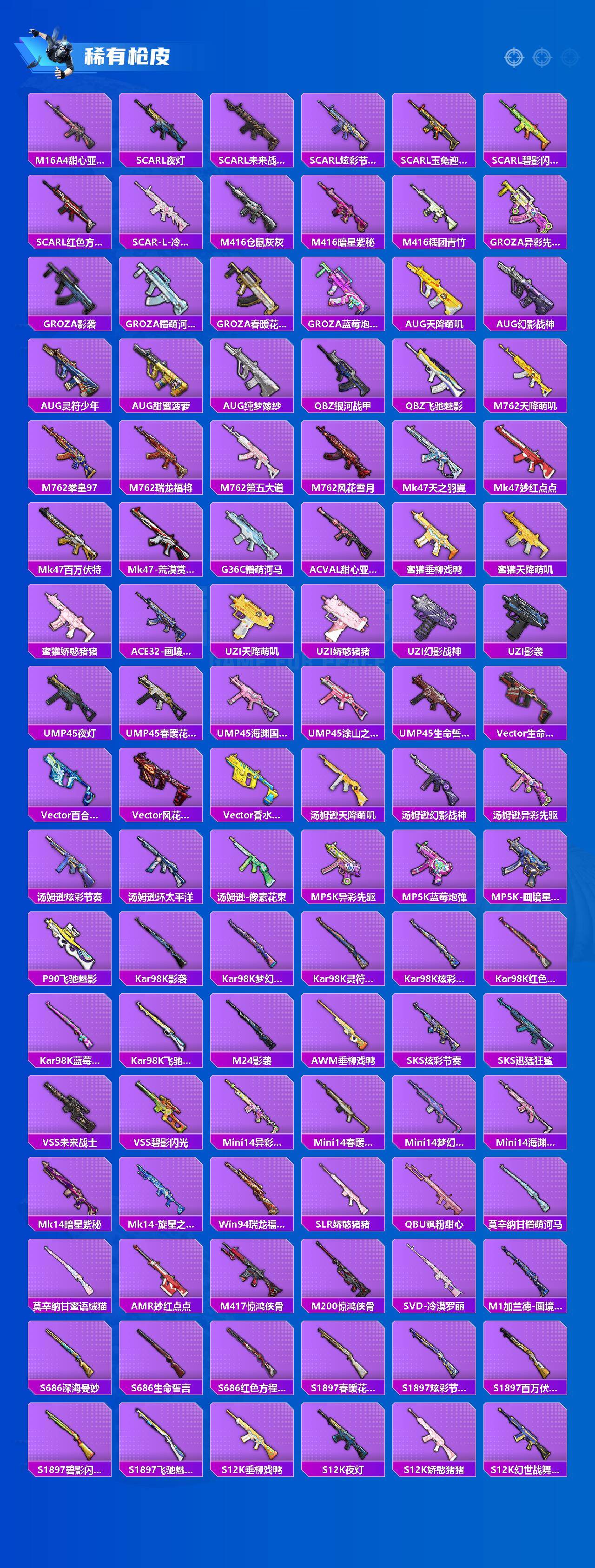 11粉装-12特效枪-6载具-6粉色飞行器-85760热力值-19王牌印记-177套装-223枪皮
