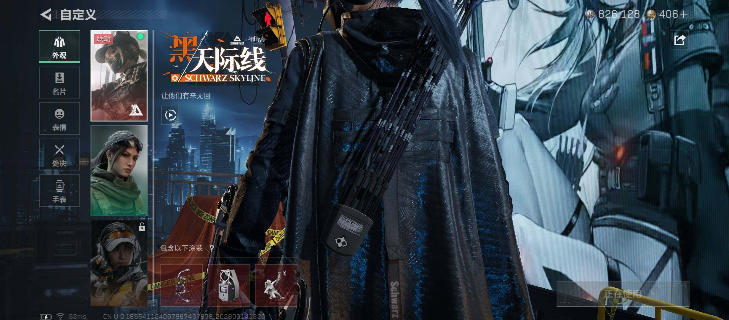 【干员外观】:露娜-黑·天际线,蜂医-送葬人·无题密令,深蓝-不破誓约,红狼-电锯惊魂
