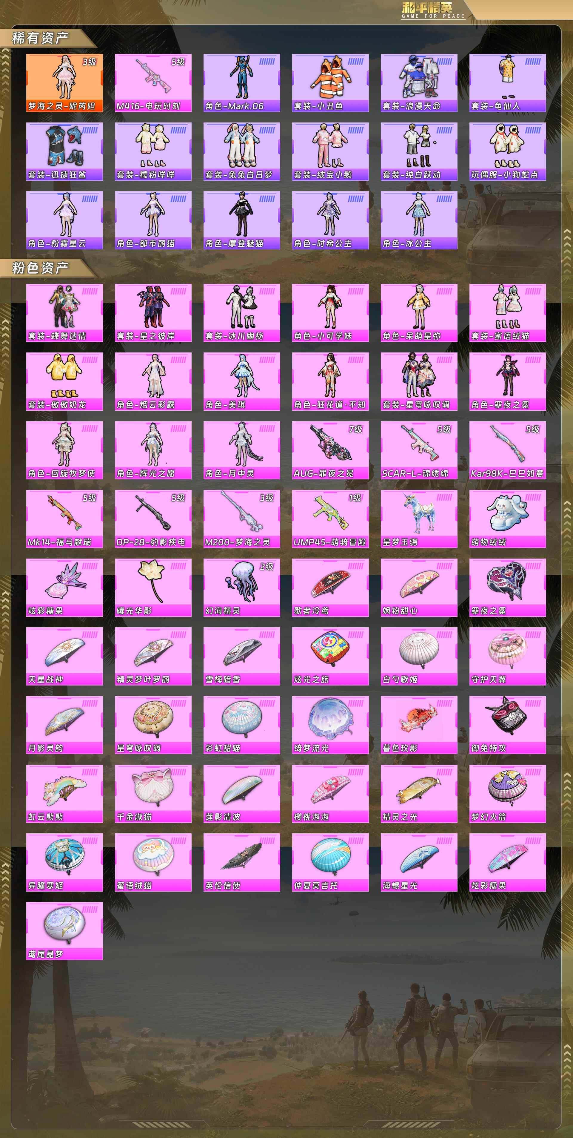 公主号-地铁满天赋-3级妮芮妲/兔兔白日梦/浪漫天命/蝶舞迷情/星之彼岸/冰川幽秘/小可学妹/呆萌星弥/蜜语绒猫/傲傲奶龙/烟云彩露/美琪/狂花道不知火舞/星穹咏叹调/罪夜之冕/回旋牧梦使/辉光之愿/月中灵/AUG罪夜之冕7级/SCAR锦绣绵绵5级/M200梦海之灵3级/UMP萌骑冒险1级/星梦玉骢(1神装15粉套8粉枪1载具)没战神框HP6377-4粉色飞行器-84788热力值-15王牌印记-
