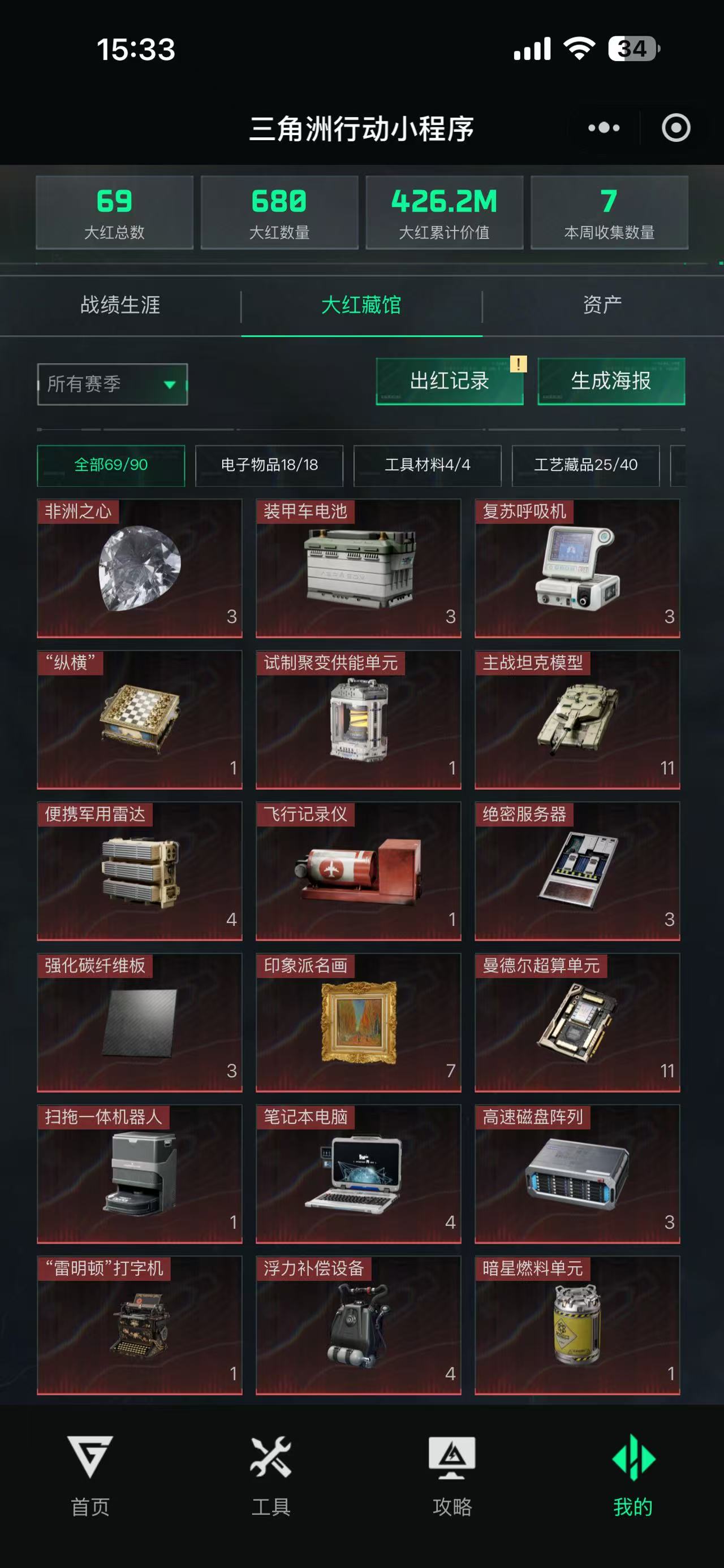 威龙露娜红皮+暗星+黑海,资产437m哈弗币120m特勤全满+赛季九格皮肤+2颗心收藏室大红