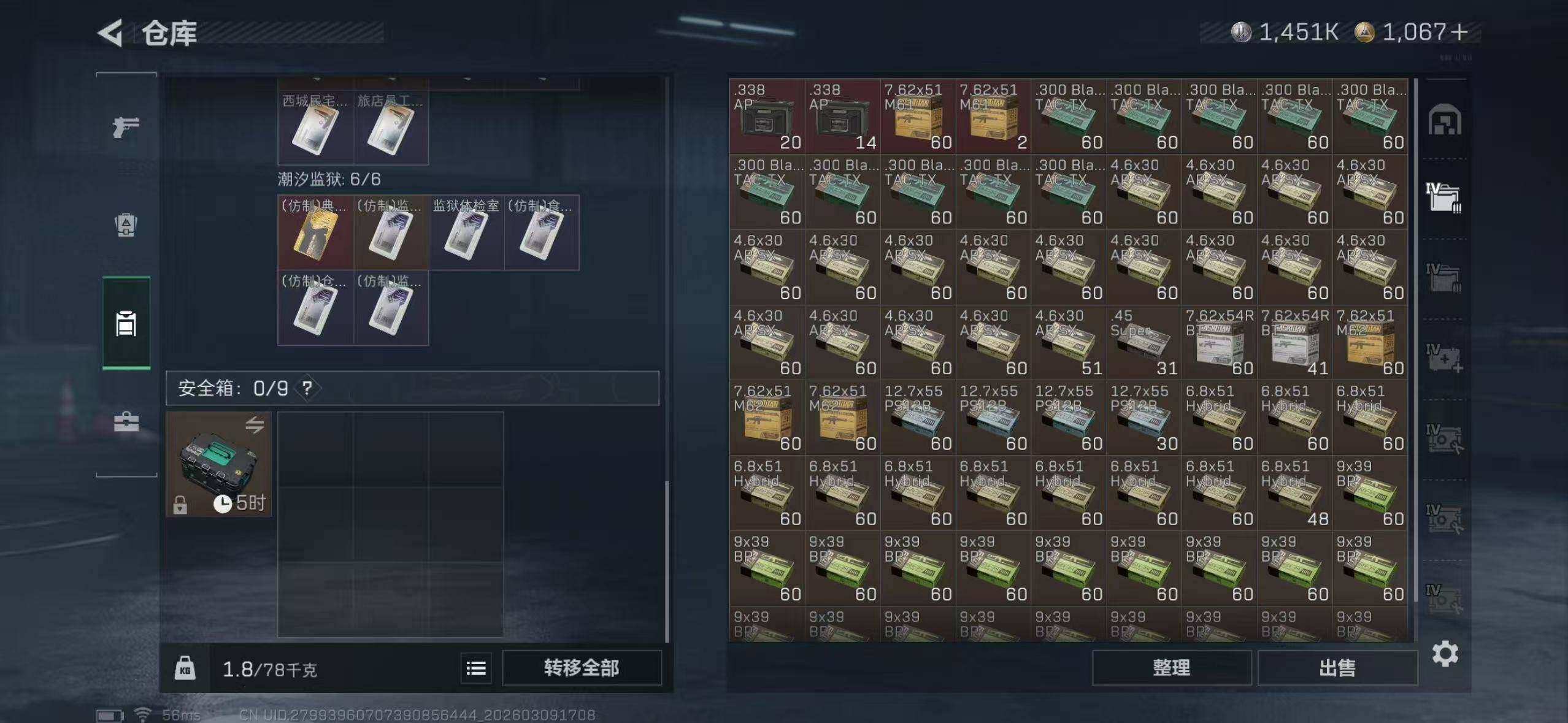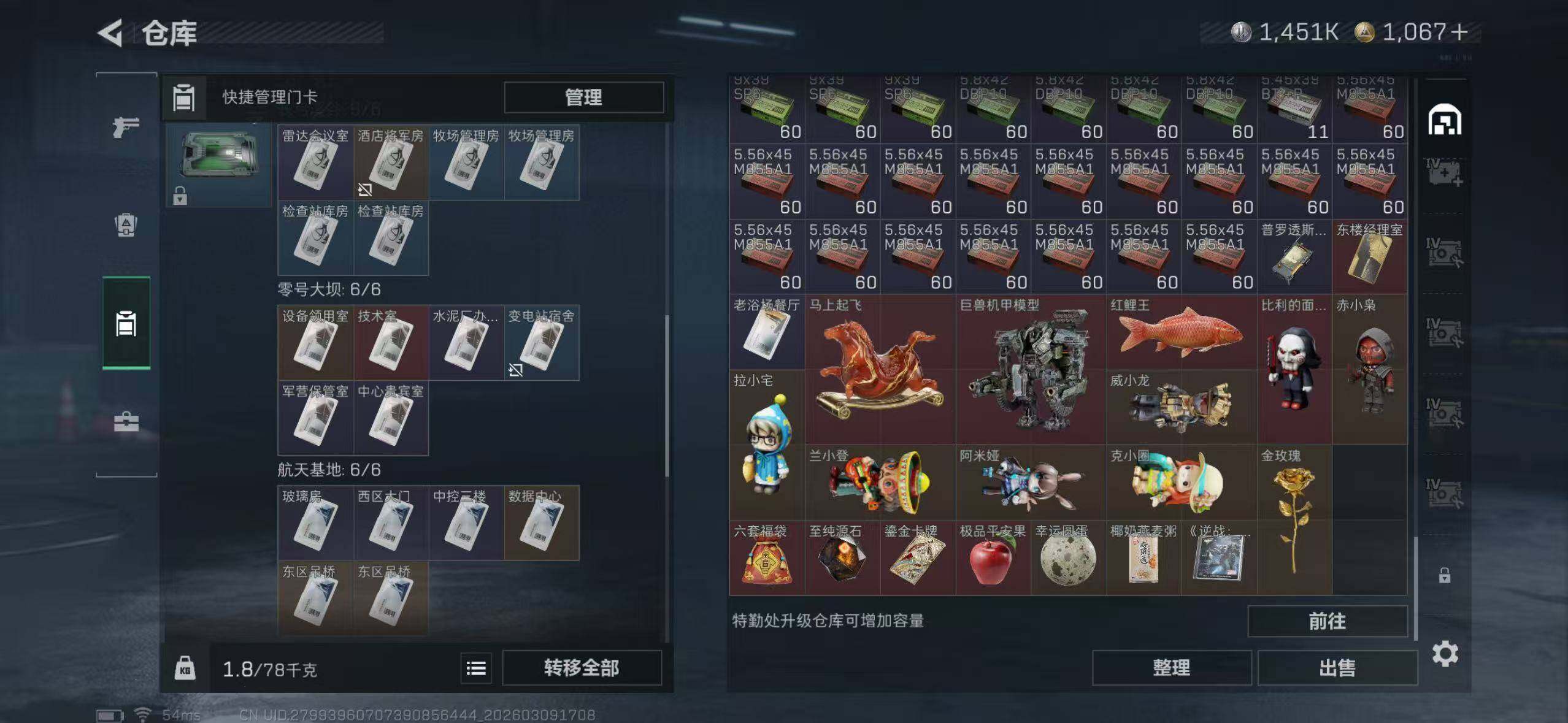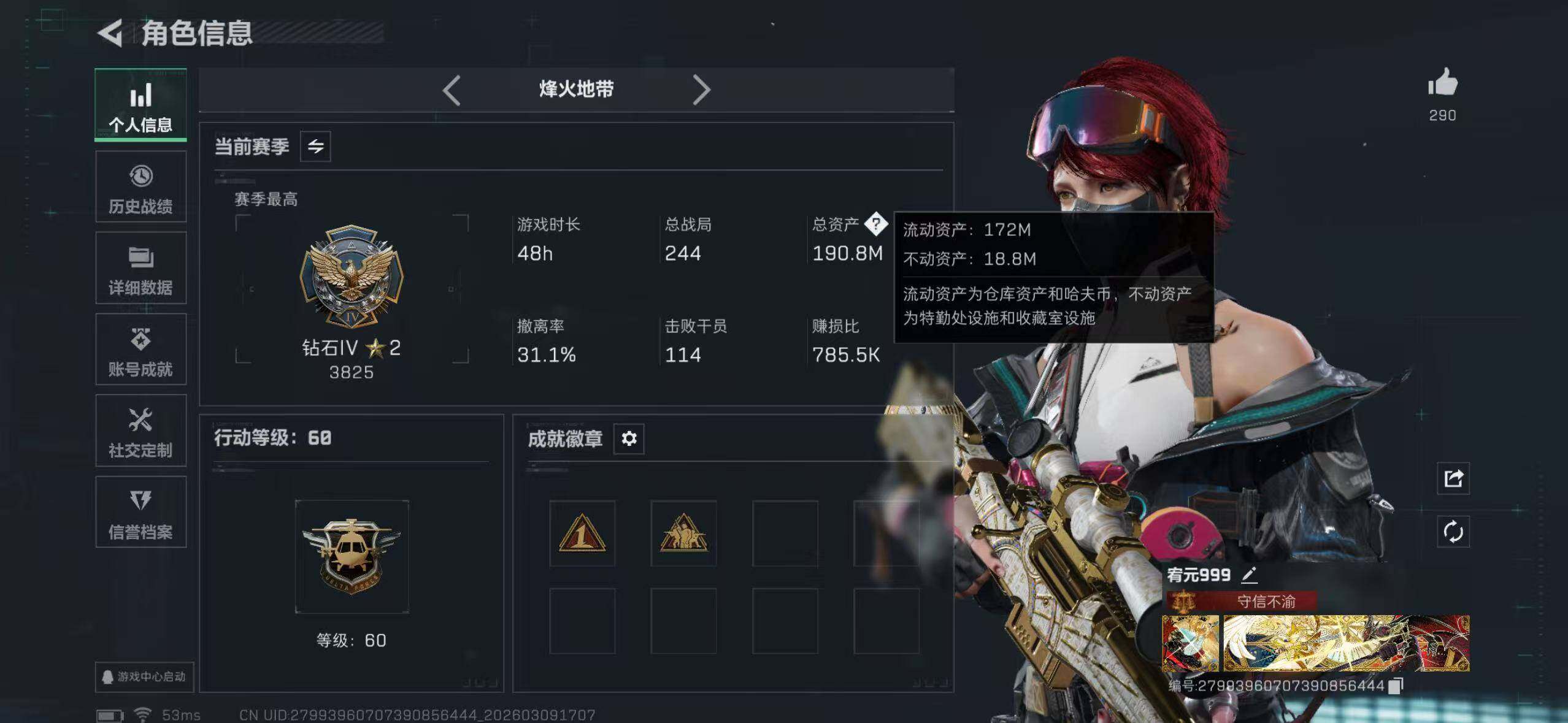 【SJ1317】【双刀】等级:60 总资产:190.5M 哈夫币:145.1W