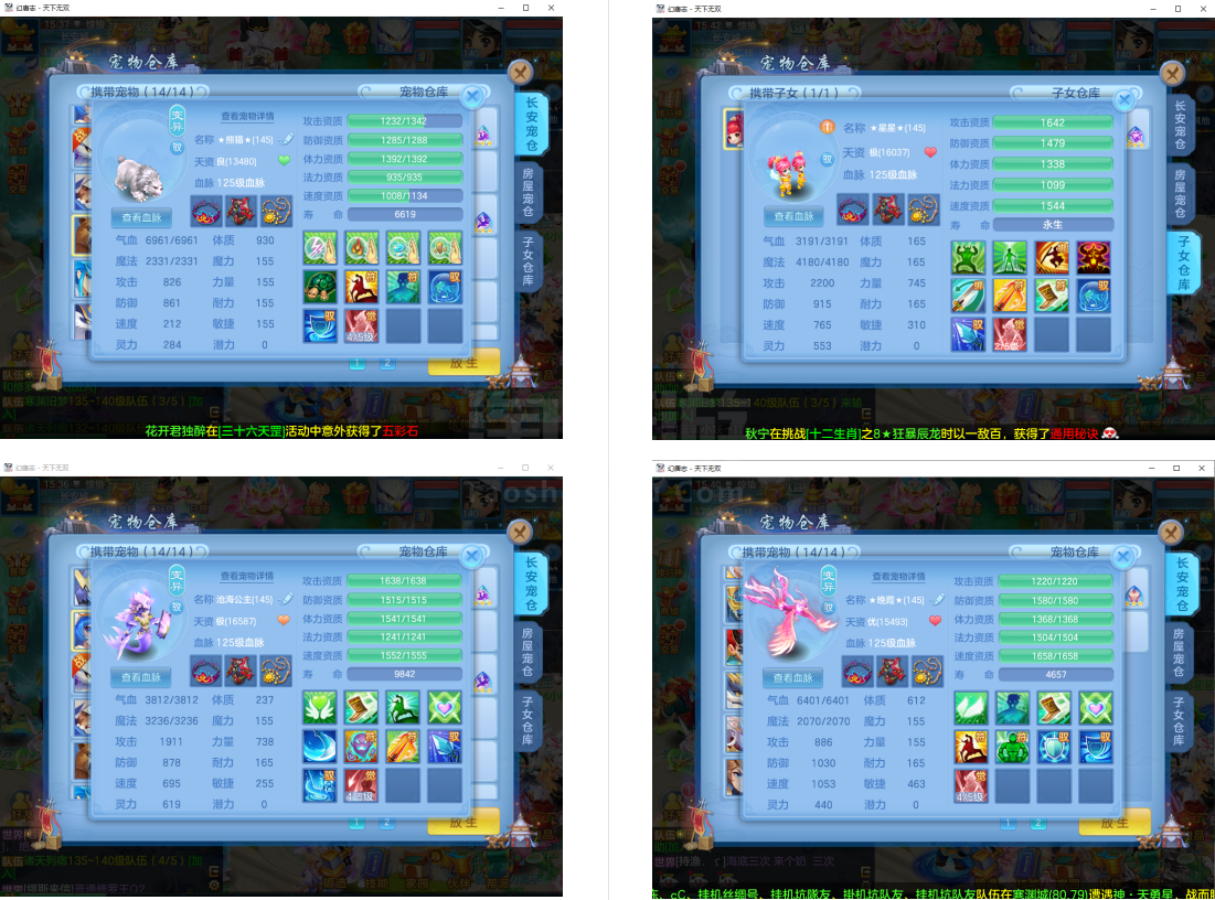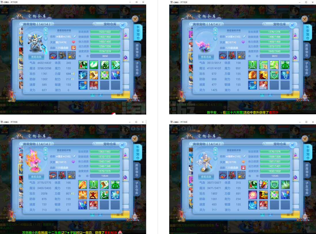 (14普陀/男)天下无双/邮箱不送/半年换绑/有双重--1件14段3件13段2件12段,特技装,神器腰带,9个6多特殊(6满魂)9红血脉4专属,12个宝宝皮肤,高级坐骑+海景房,3444成就