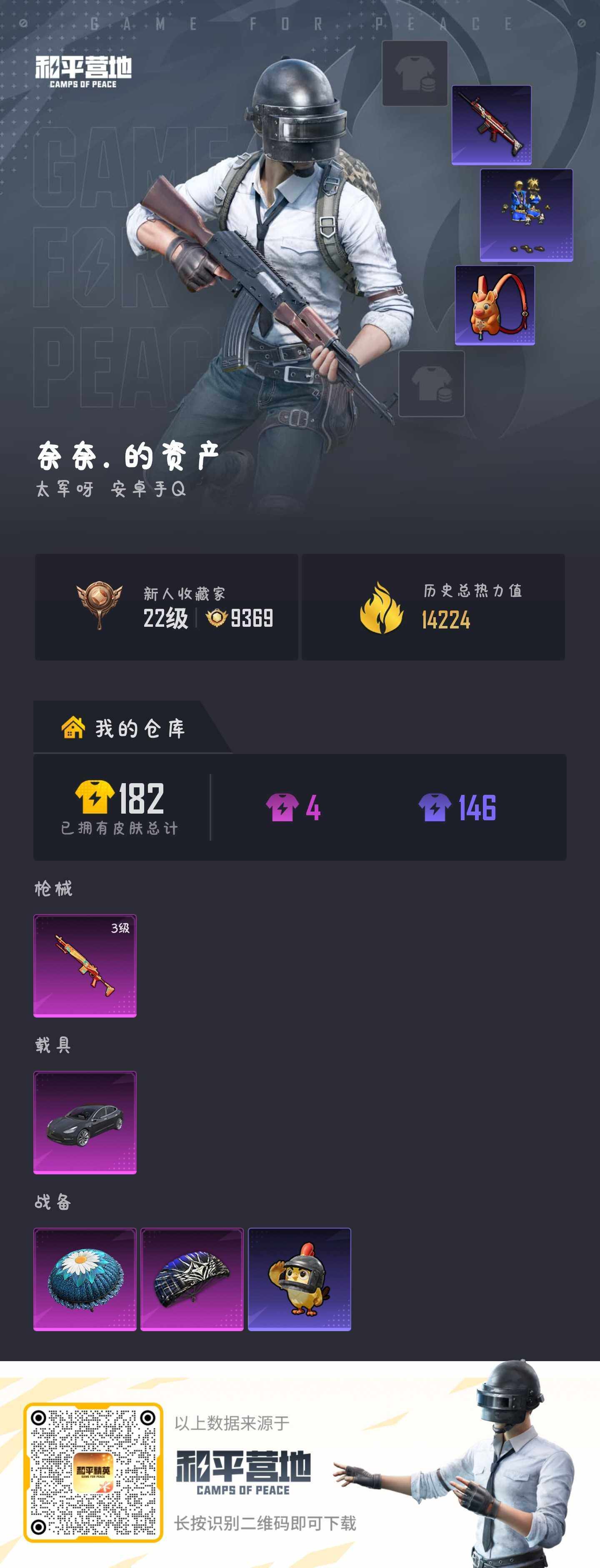 安卓 手Q-0粉装-1特效枪-1载具-0粉色飞行器-14404热力值-1王牌印记-40套装-44枪皮