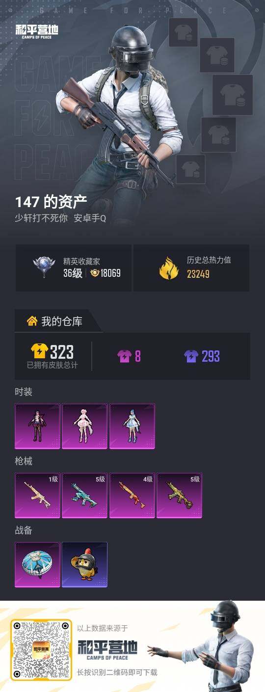 安卓 手Q-3粉装-4特效枪-0载具-0粉色飞行器-23249热力值-1王牌印记-56套装-91枪皮