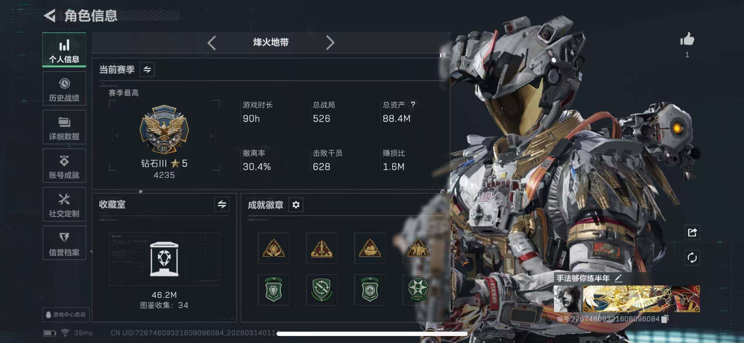 【特价出售/店主推荐】88m总资产-1164k哈伏币-60烽火等级-钻石-11战场等级-列兵【干员外观】:威龙-凌霄戍卫【近战皮肤】:近战-暗星,近战-处刑者2级,近战-黑鹰【传说外观】:AKM突击步枪-锦绣,QBZ95-1突击步枪-凌霄戍卫,K416突击步枪-行动记录,AUG突击步枪-悠然茶歇,SG552突击步枪-白鹰军团,AS Val突击步枪-动力风潮,腾龙突击步枪-马年祥瑞,K437突击步枪-锦绣,MK47突击步枪-悠然茶歇,MK47突击步枪-暗星,UZI冲锋枪-悠然茶歇,SMG-45冲锋