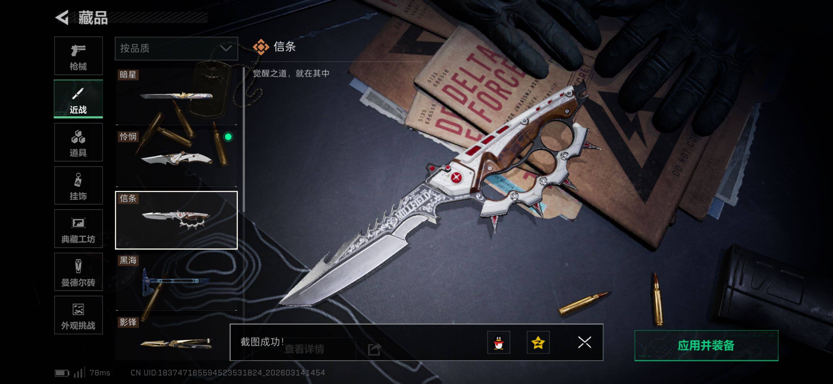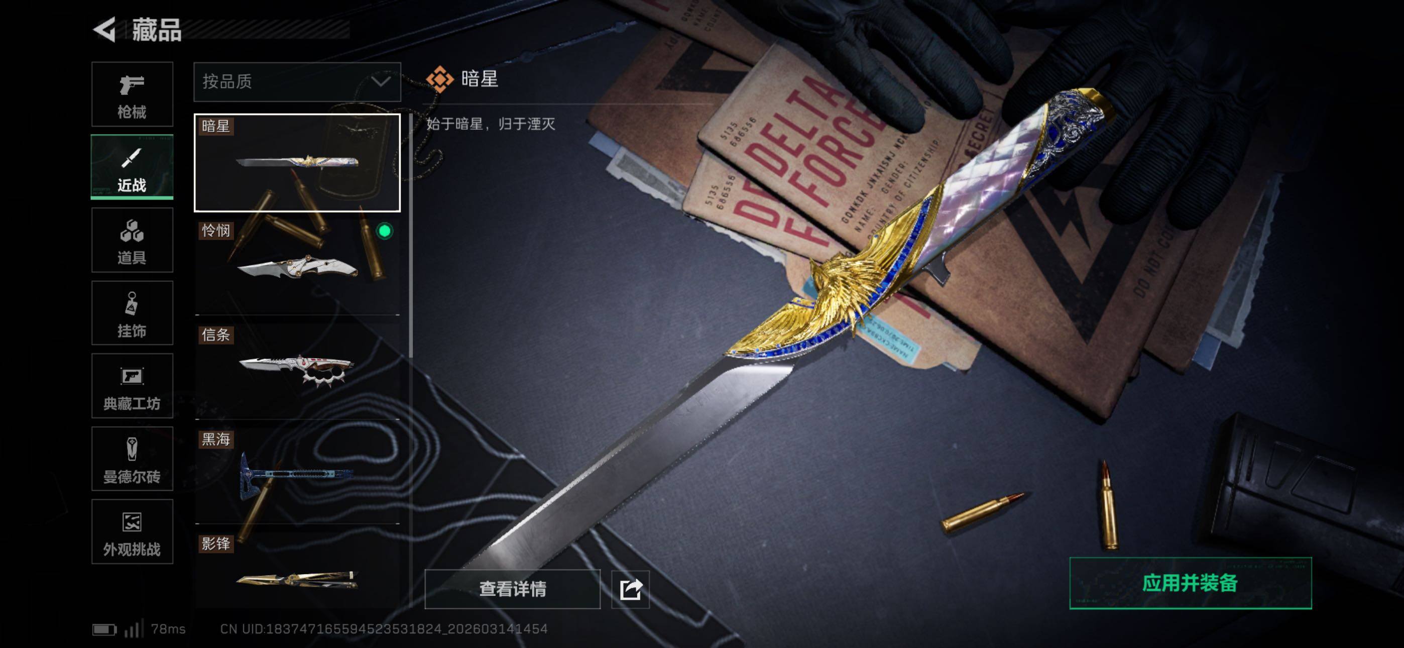 【近战皮肤】:近战-暗星,近战-信条,近战-黑海,近战-影锋,近战-怜悯,近战-黑鹰