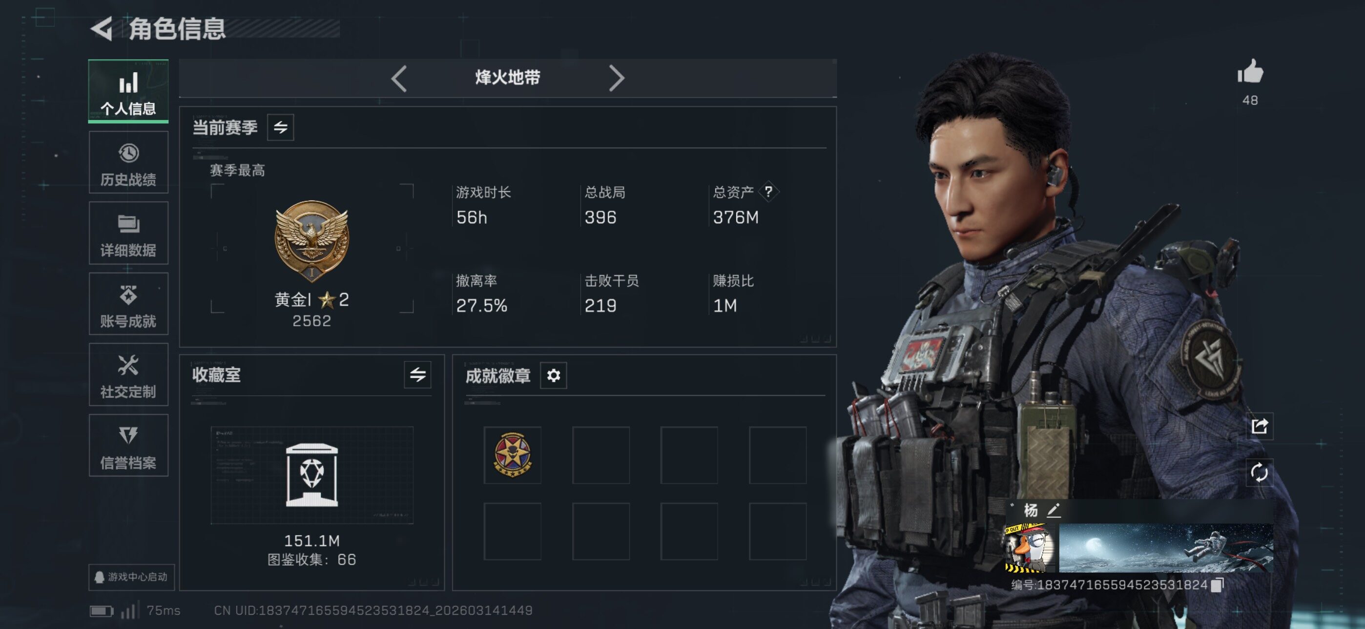 60总资产:376M 纯币14757k 红皮: 飞虎 壮志凌云 黑天际线 维什戴尔 刀皮 怜悯 影锋 黑海 信条 暗星 特勤处:仓库9,训练7,靶场7