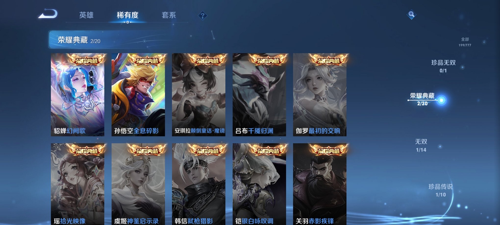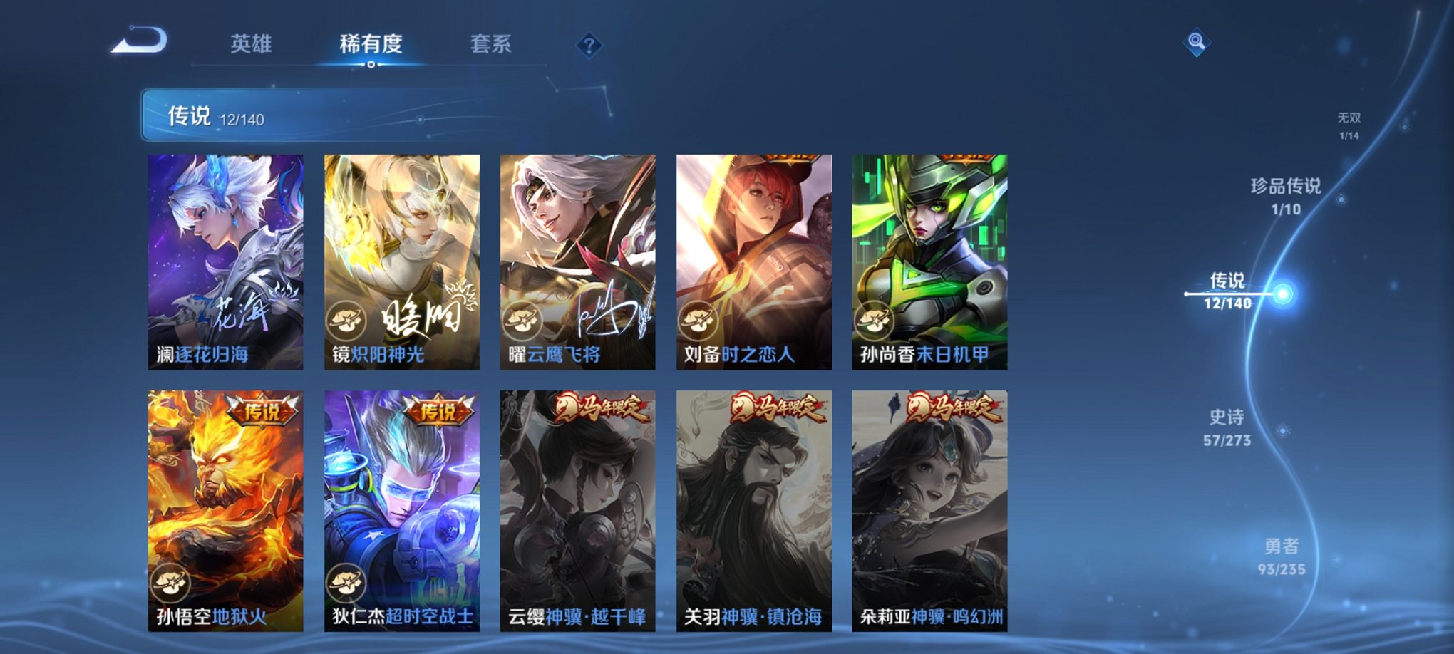 可二次 12传说199皮肤2水晶1无双1珍品 -126英雄