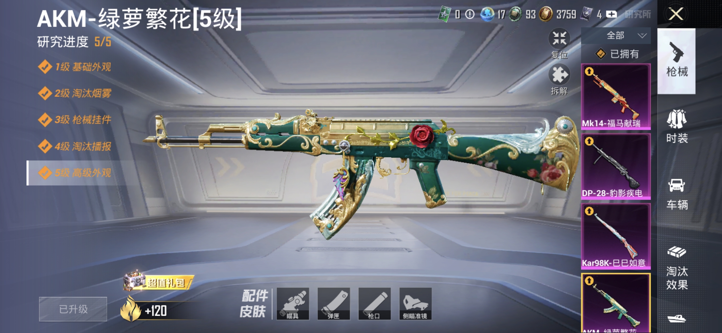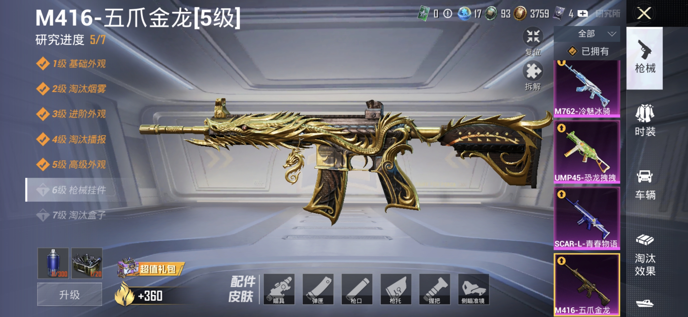 1载具-3粉装-8特效枪-59套装-99枪皮-1王牌印记-英勇黄金Ⅳ-31508热力值
