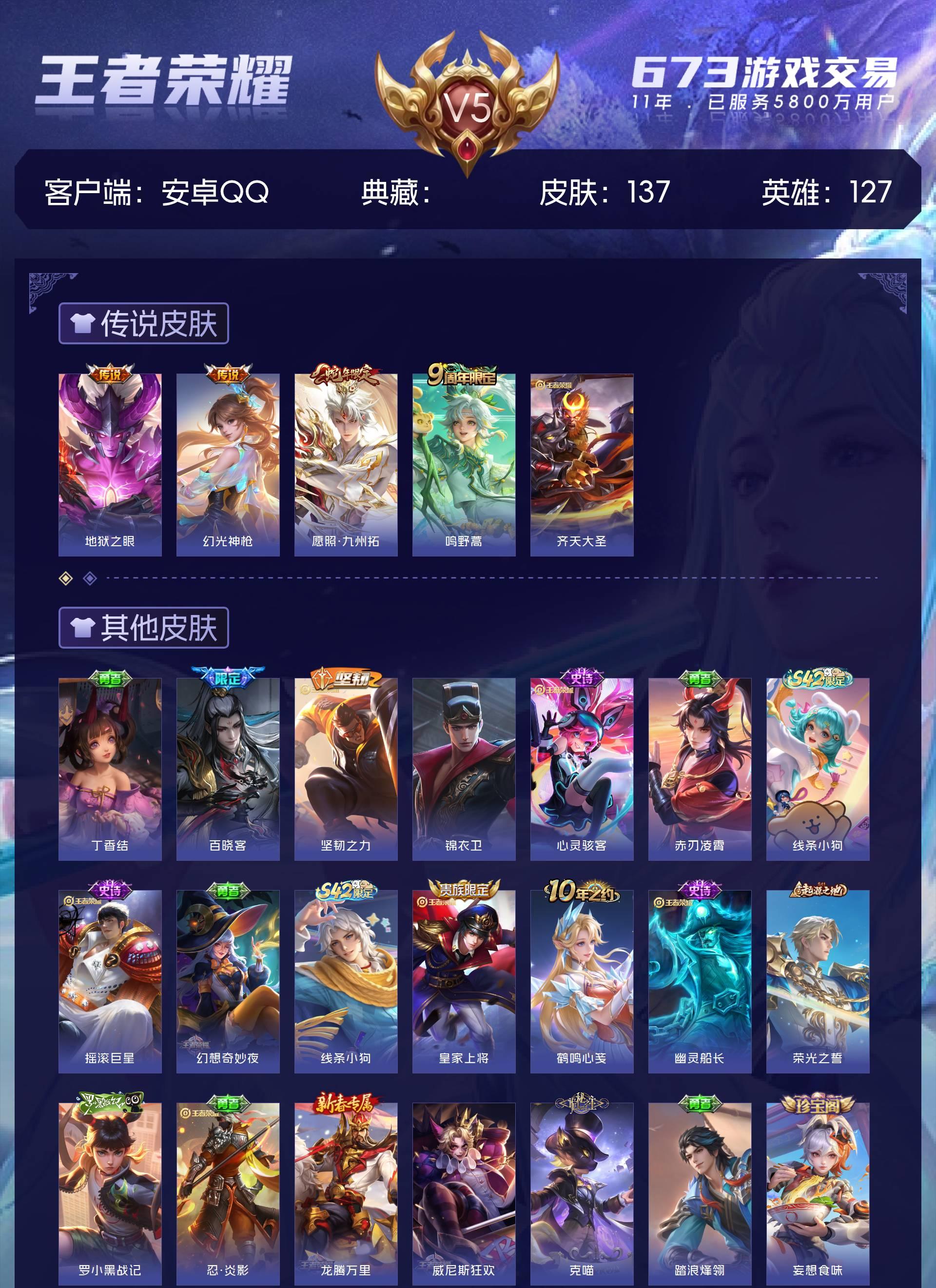 V5 皮肤137 英雄127 至尊星耀 传说5 其他皮肤139