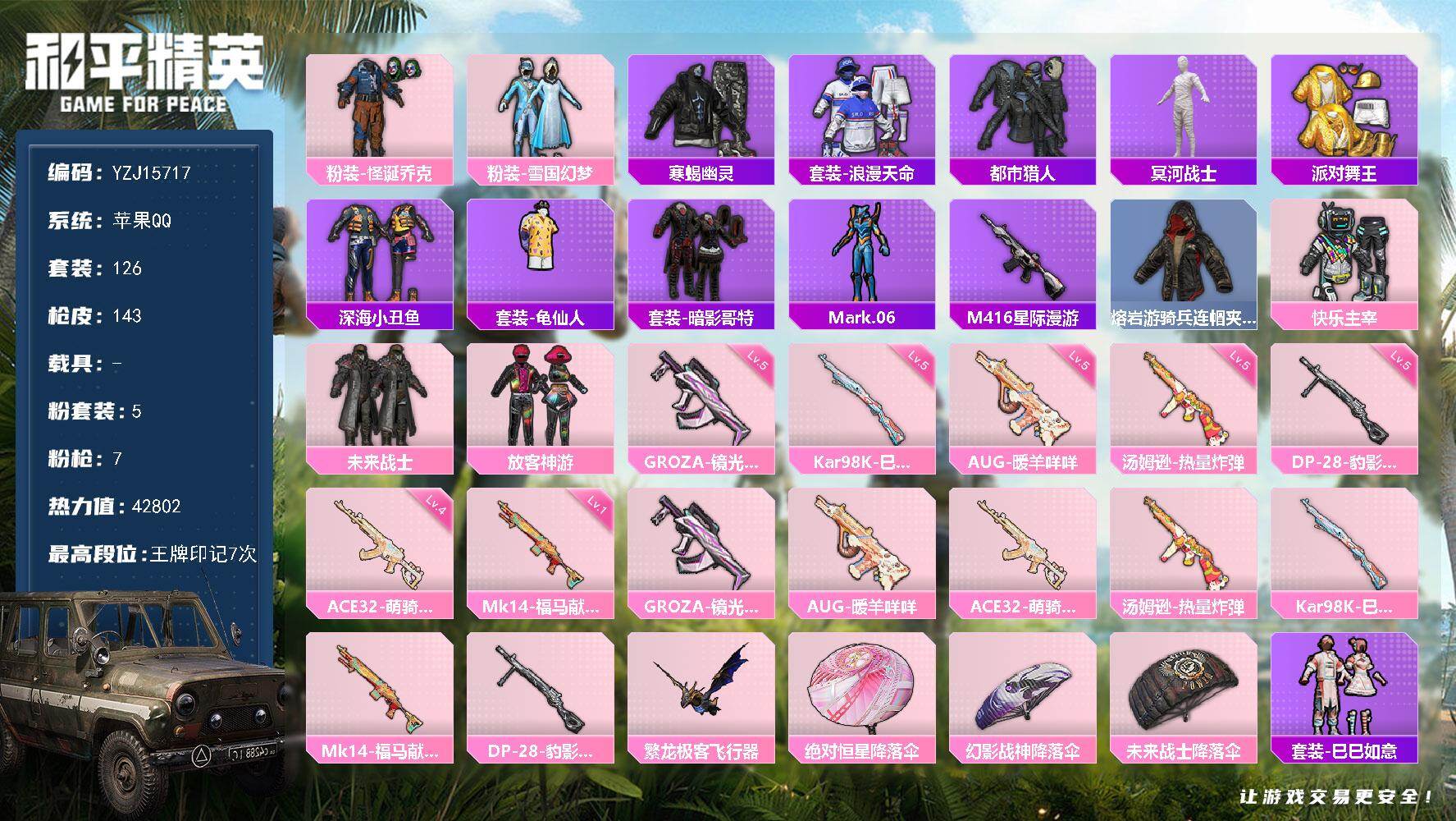 2502157_包实名苹果Q-【极品精氪身法男神号伤感小雾神同款手慢无!!!粉丝标M4星际雪国小丑[怪诞]冥河战士都市寒蝎黑色ROCK长袖体恤脏辫LED发光眼罩熔岩游骑兵面罩深海小丑鱼4AM战队服红眼罩浪漫天命国宝头盔雪国背包】8稀有5粉装7特效枪10热门126套装143枪皮42802热力值7印记历史绝世王牌19星【8稀有】木乃伊寒蝎幽灵M416-星际漫游AKM-缤纷海域都市猎人浪漫天命派对舞王派