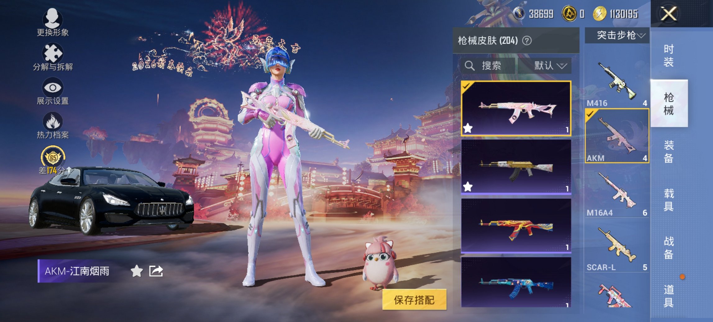 可二次实名【女号梦幻火箭10粉装9特效枪2载具 秒换绑不用等】 安卓Q区-64902热力值-9印记-164套装-204枪皮 【2载具】 玛莎拉蒂Q蓝色 萌兔起飞僚机【10粉装】 梦幻火箭 冰霜白皇 旋转彩虹 第五大道 音爆索尼克 呆萌星弥 冰川幽秘 角色-萨利娅 幻彩电音 金丰海韵【9特效枪】 Mk14-福马献瑞(1级) DP-28-暗夜鎏金(6级) M417-第五大道(7级) GROZA-旋转彩虹(7级) M762-青锋波束(5级) DP-28-千金淑猫(1级) Kar98K-巳巳如意(5级)