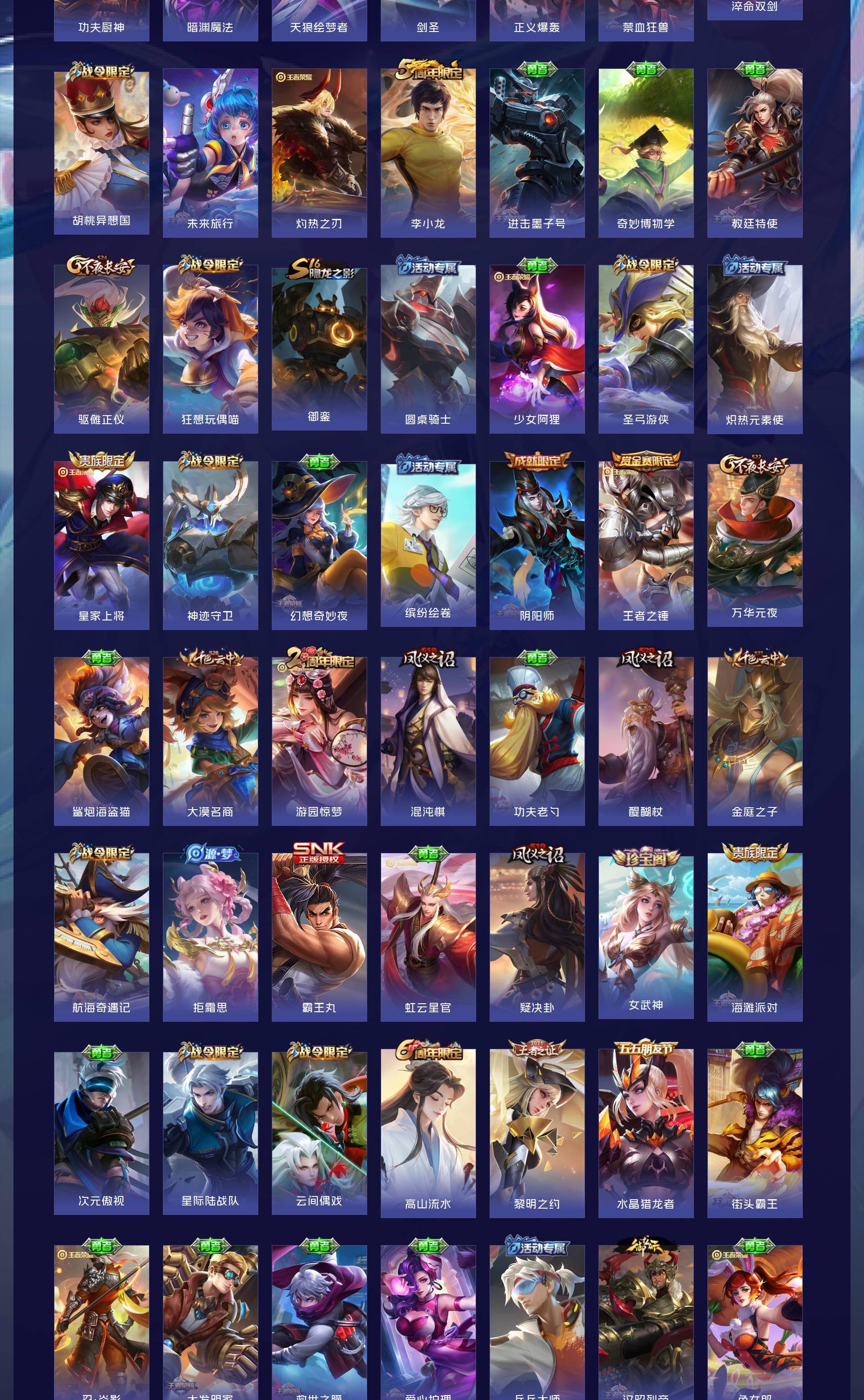 V8 皮肤350 英雄127 荣耀王者 荣耀典藏1 珍品传说2 传说14 其他皮肤339