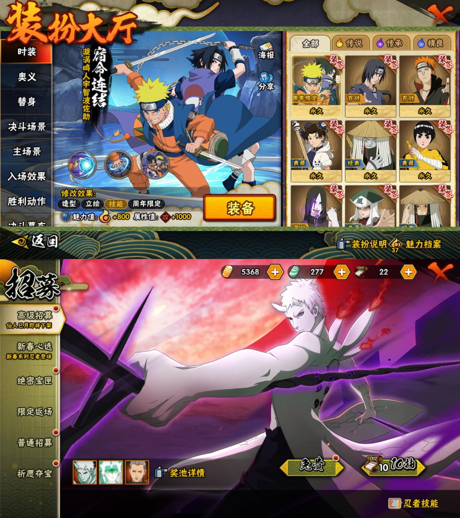 【S忍者】宇智波带土「十尾人柱力」,宇智波佐助「漩涡鸣人」,宇智波佐助「永恒万花筒」,漩涡鸣人「九喇嘛连结」,宇智波带土「忍界大战」,千手柱间「秽土转生」,自来也「舞之豪杰」,宇智波鼬「秽土转生」,佩恩·天道「超」,药师兜「仙人模式」,宇智波斑「秽土转生」,宇智波斑「白面具」,半藏「秽土转生」,千手扉间「秽土转生」,纲手「百豪
