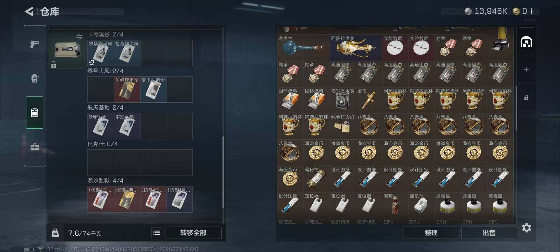 总资产(M):49M/哈夫币(K):13946K/哈夫币(