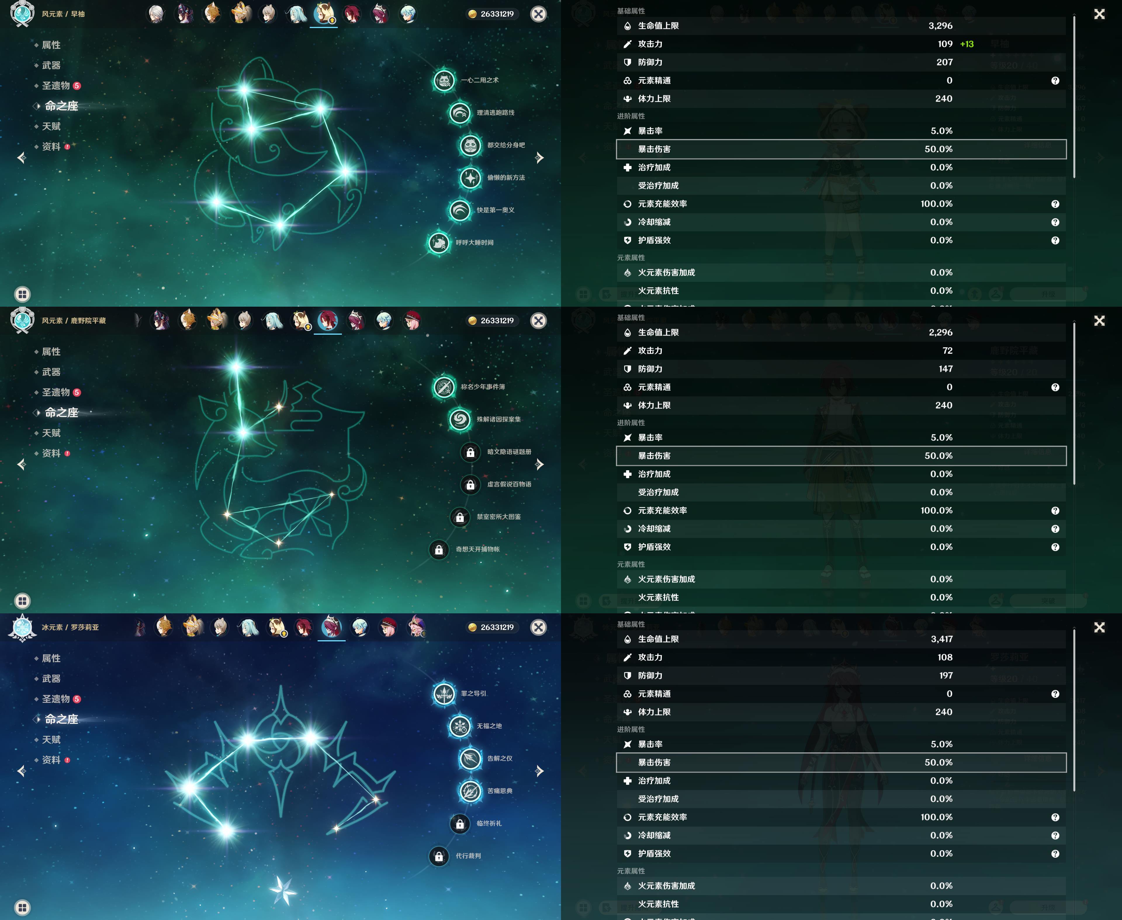 五星角色: