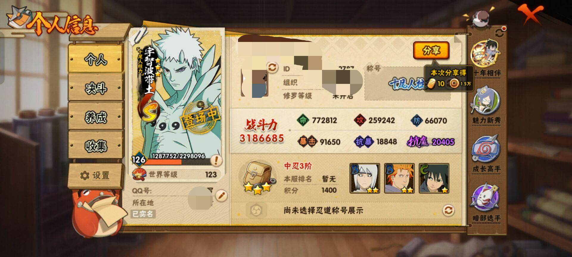 V5/战力318W/S忍5/A忍13/舞之豪杰-自来也/2星桃地