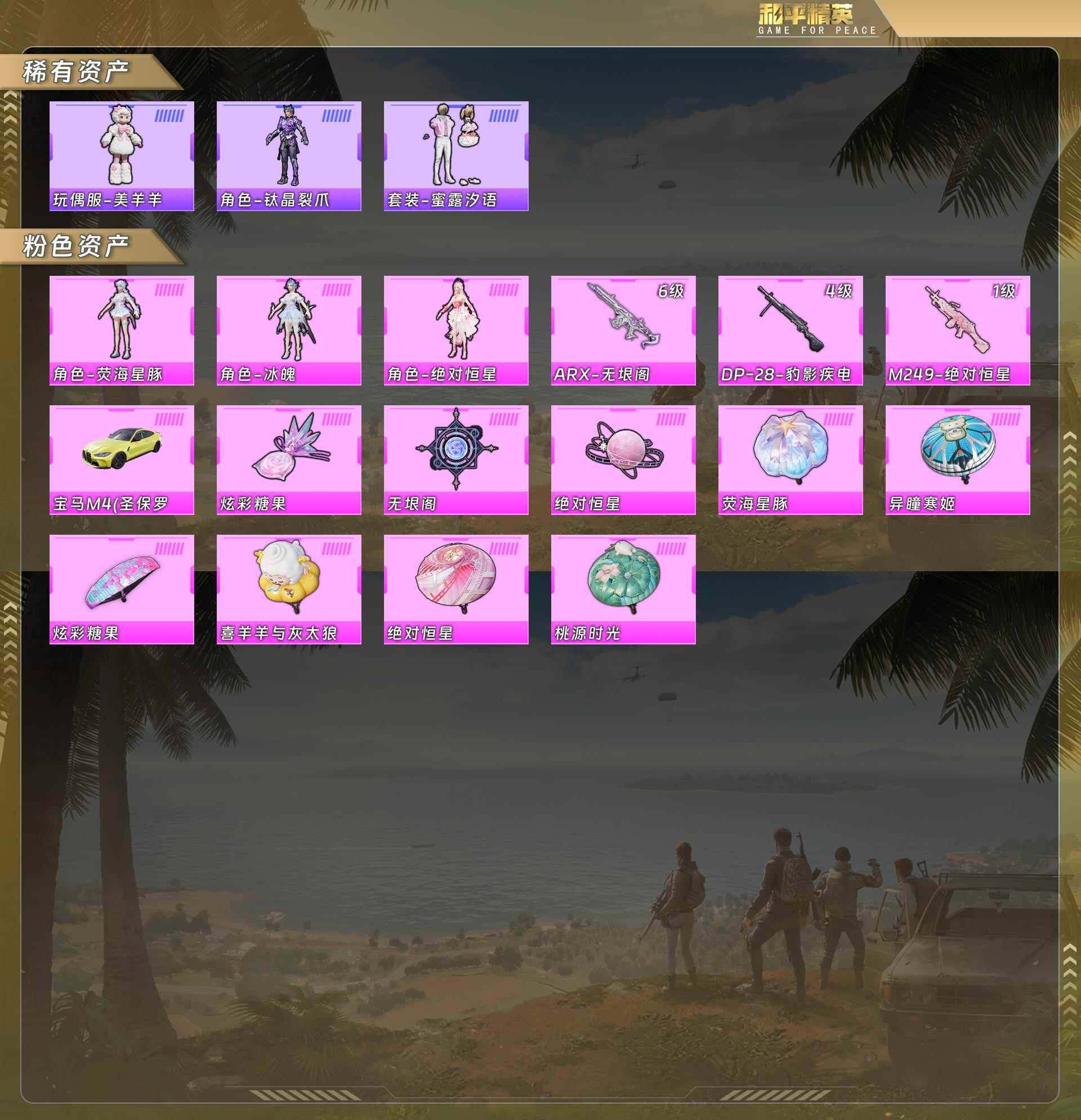 【粉色枪皮等级】:ARX-无垠阁(六级),M249-绝对恒星(一级),DP-28-豹影疾电(四级)