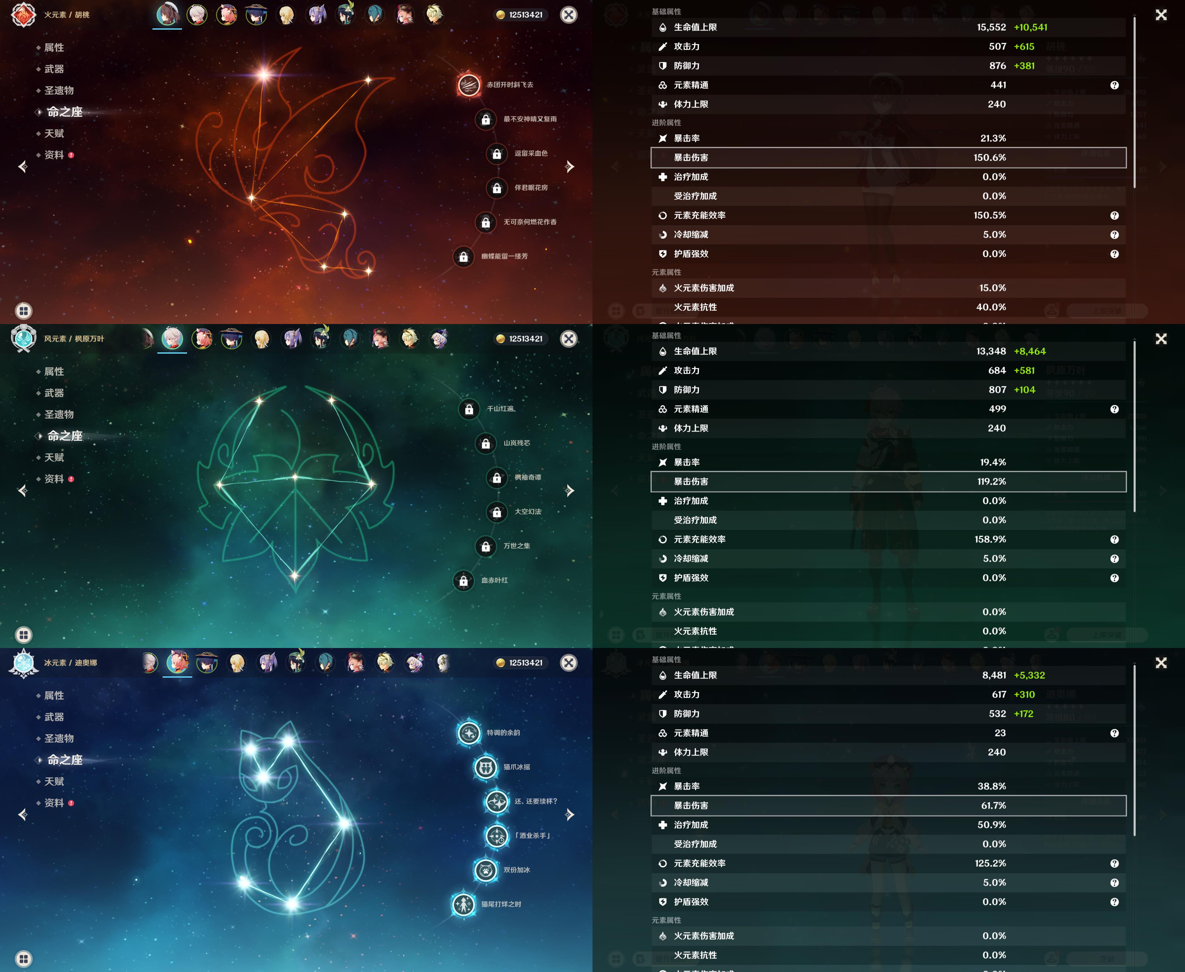 56级/17黄/女主/12个五星角色/1个五星武器/1命胡桃/枫