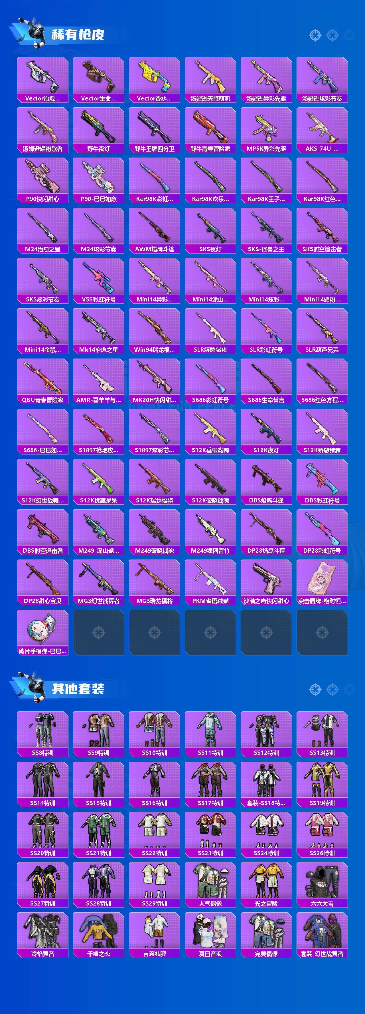 【粉色枪皮等级】:SCAR-L-锦绣绵绵(五级),Kar98K-巳巳如意(五级),Mk14-福马献瑞(五级),DP-28-豹影疾电(五级)
