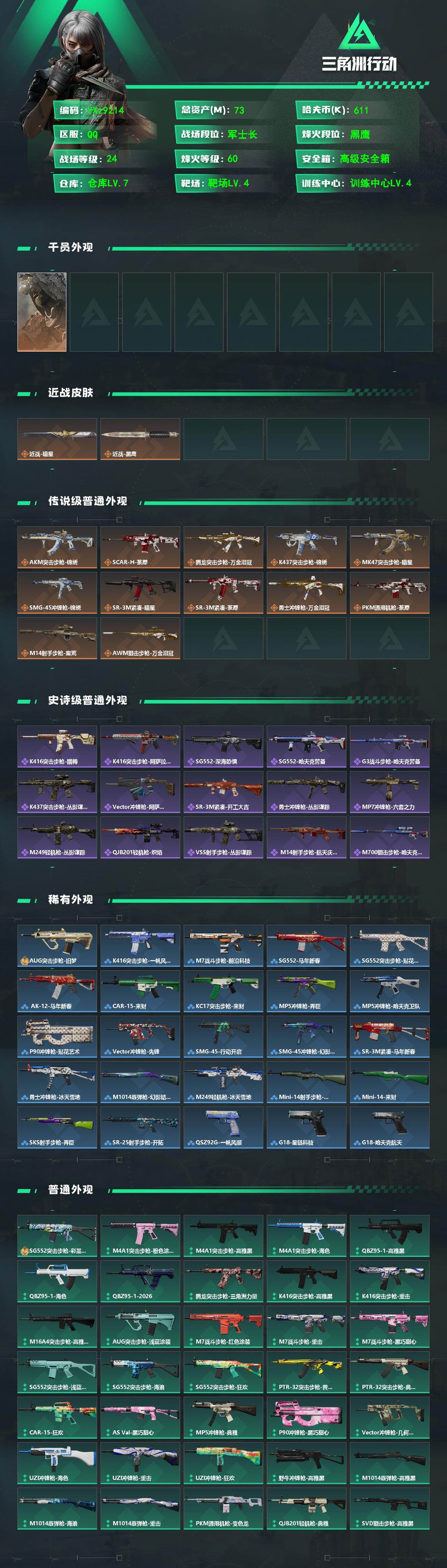 【赛季热门裸暗星.73M资产】【Q区三端互通】【【无二协助处理】】YXz9214-特勤处:仓库7级/靶场4级/训练中心4级-总资产73m-哈夫币61w-烽火等级:60级