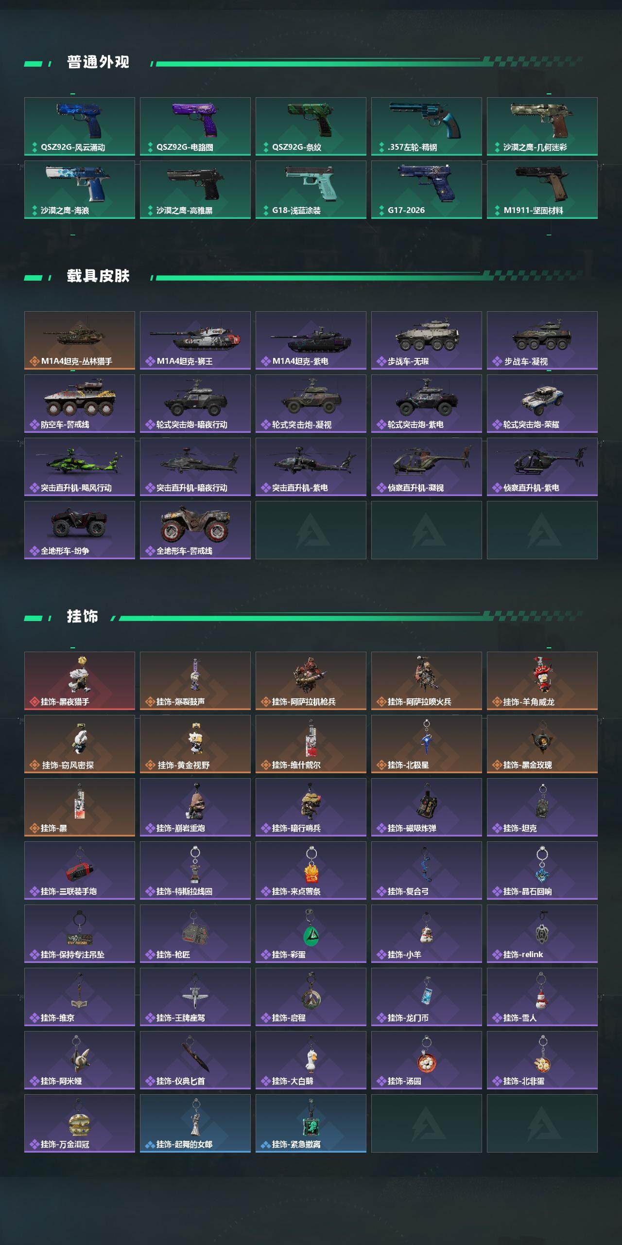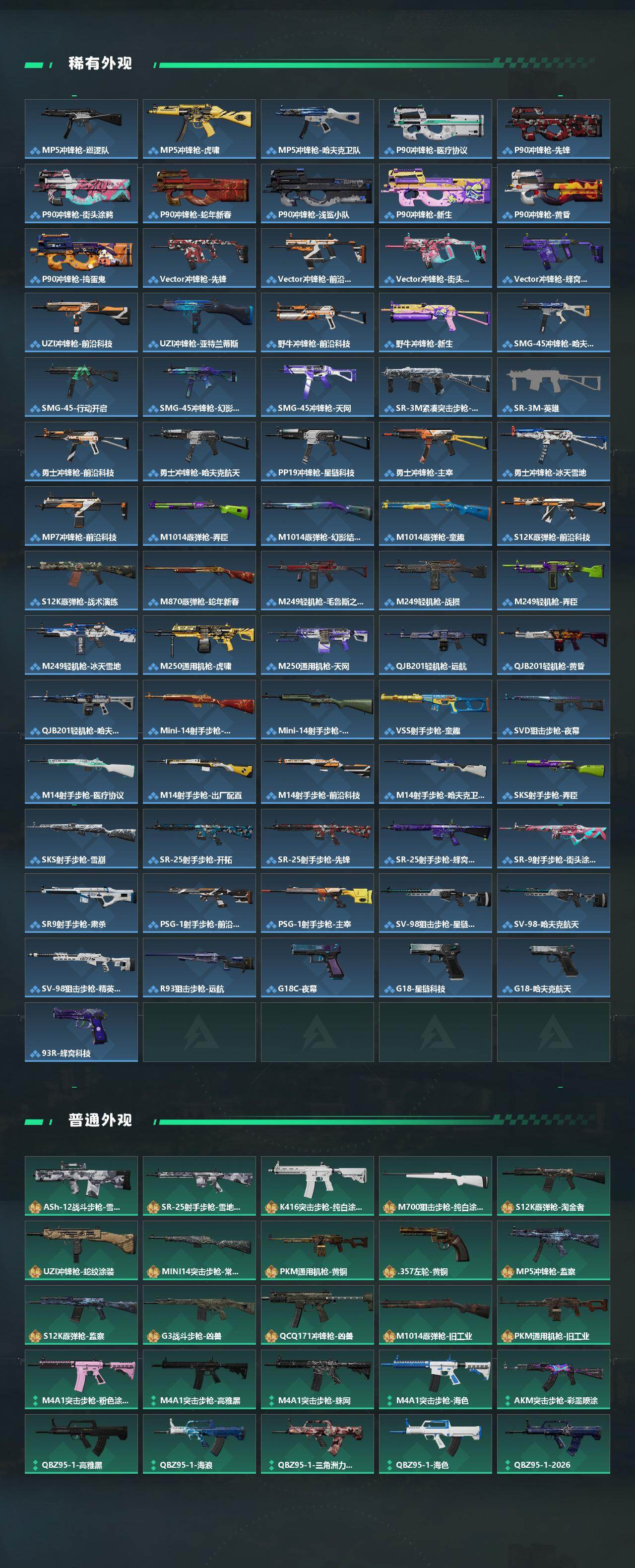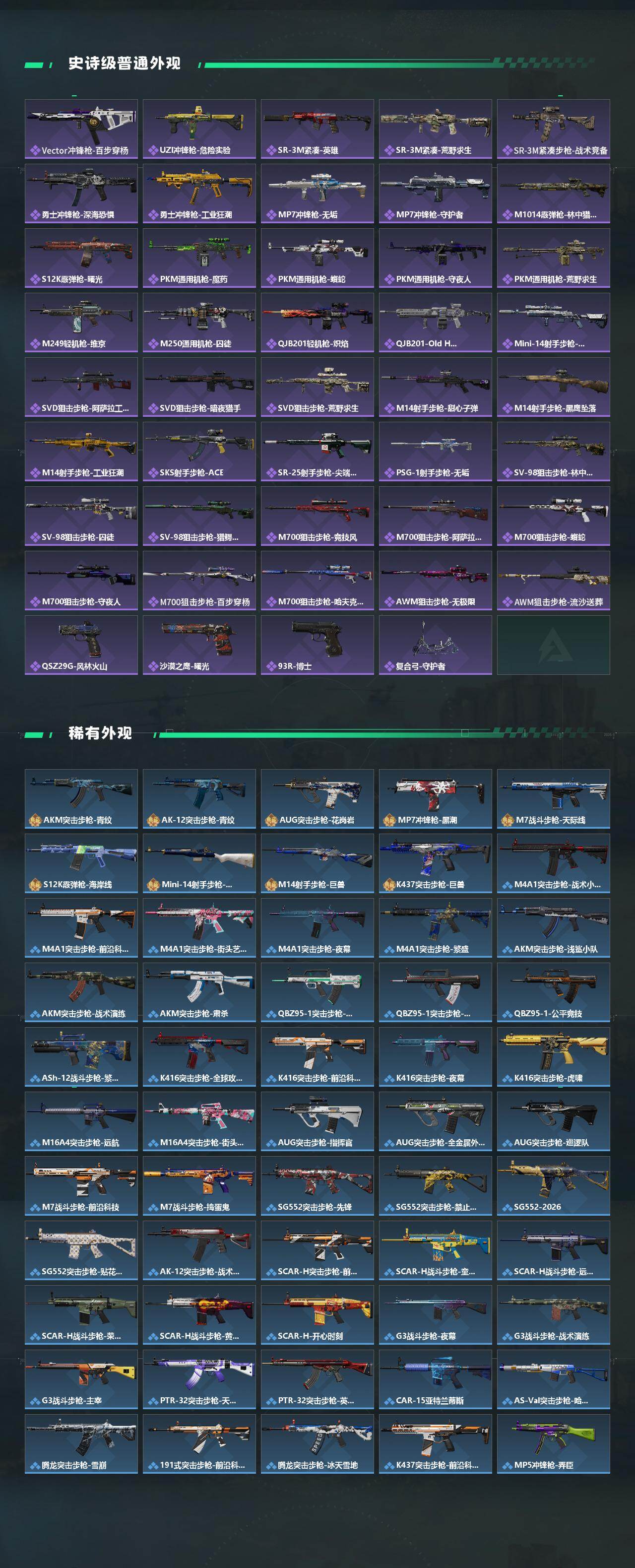 【近战皮肤】:近战-北极星,近战-影锋,近战-怜悯,近战-赤枭,近战-黑鹰
