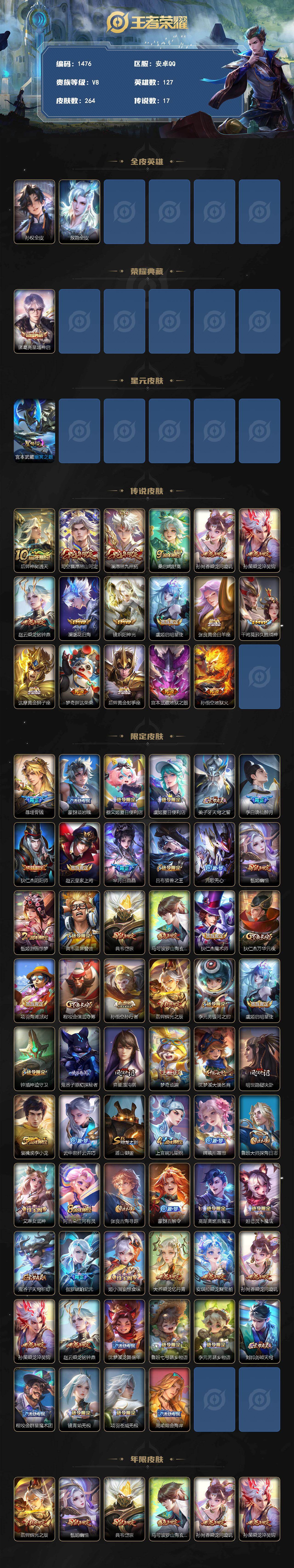 V8-最强王者段位-127英雄-264皮肤-1典藏皮肤-17传说-83史诗