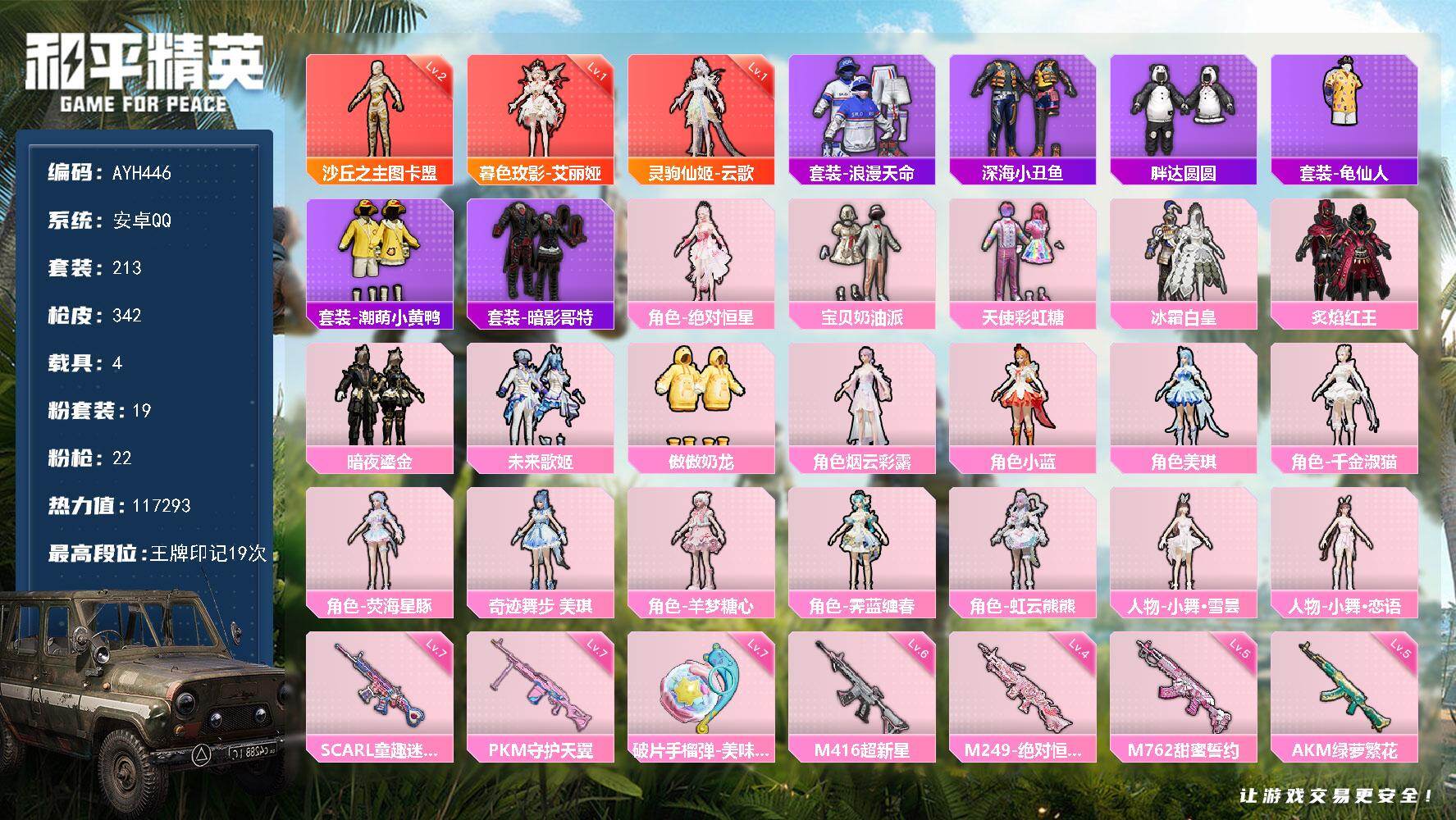 安卓 手Q-2神装-7粉装-19特效枪-3载具-7粉色飞行器