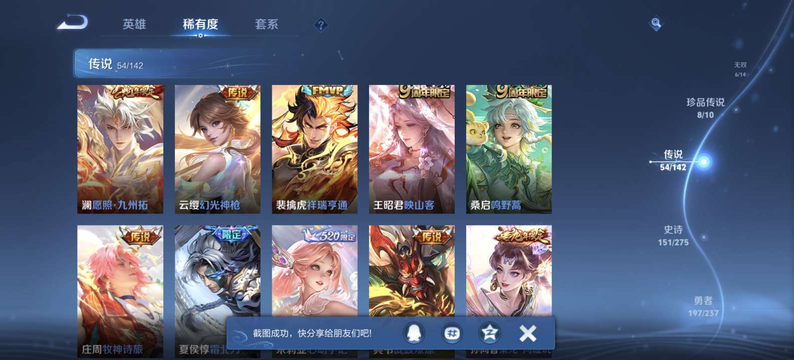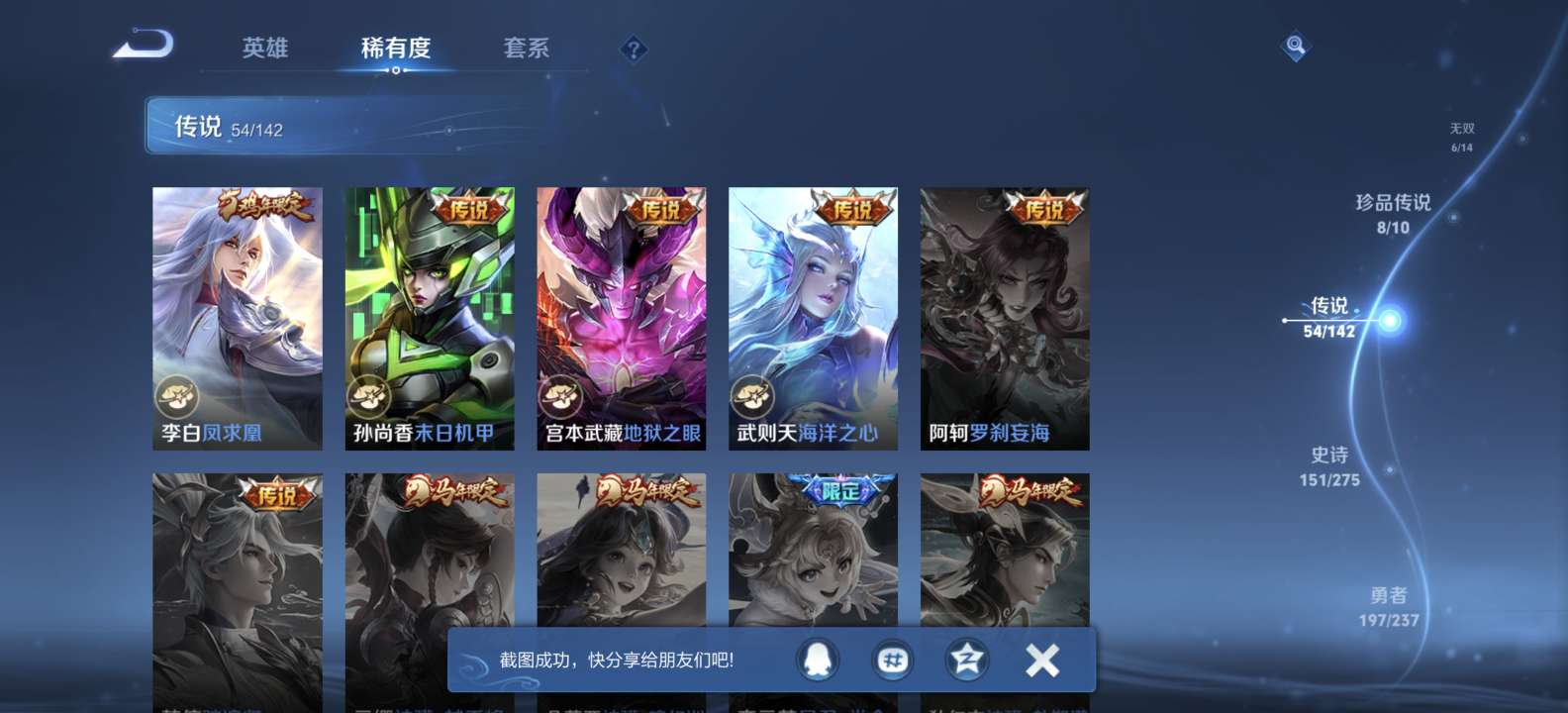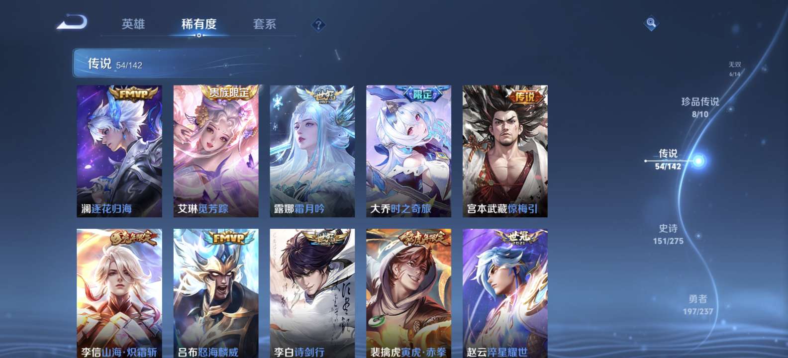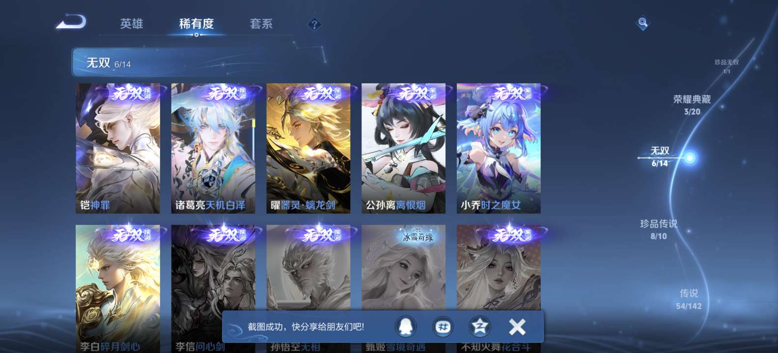 无双v10 500皮肤 珍品无双 3典藏 6无双 8珍品传说 54传说 151史诗