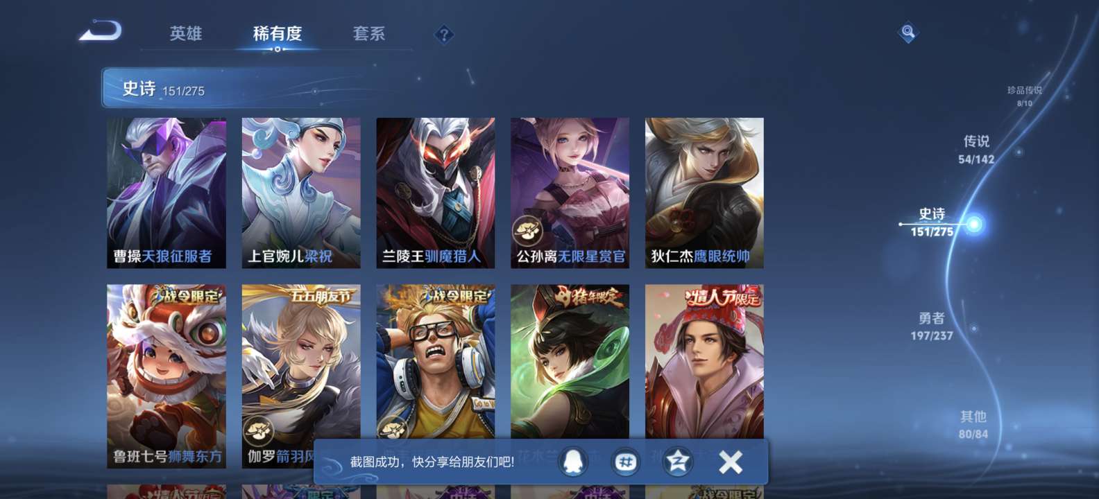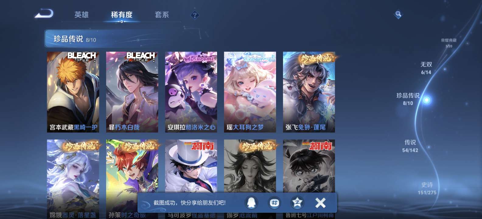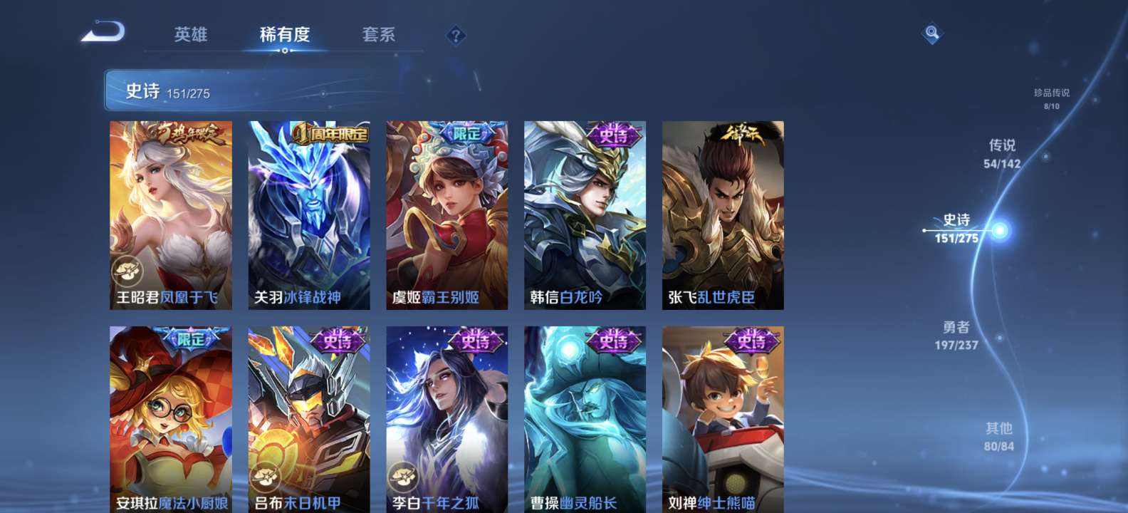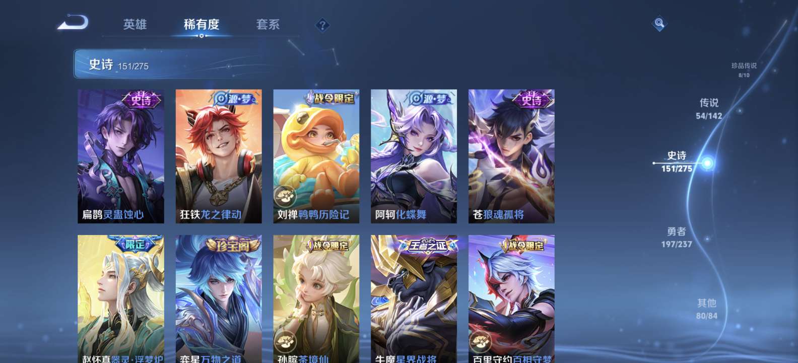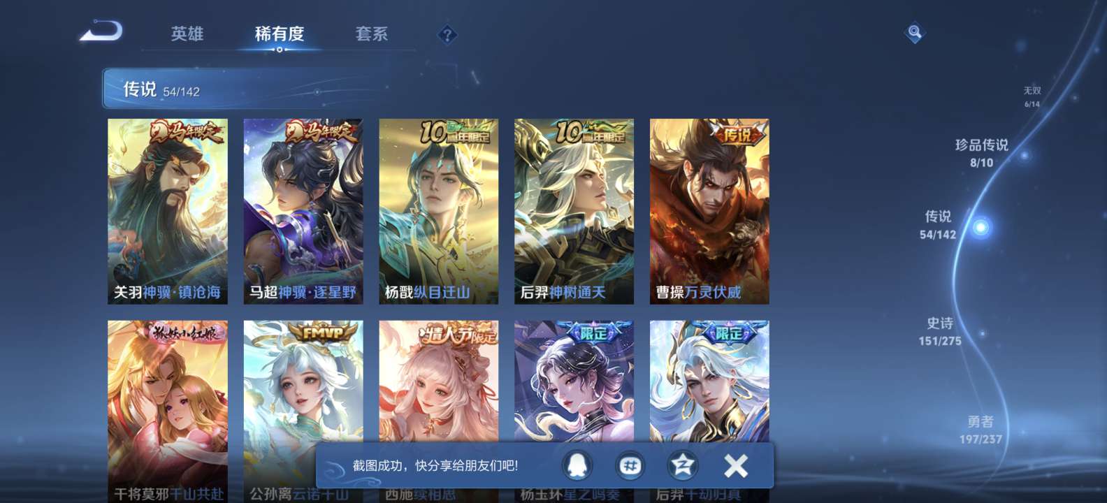 无双v10 500皮肤 珍品无双 3典藏 6无双 8珍品传说 54传说 151史诗