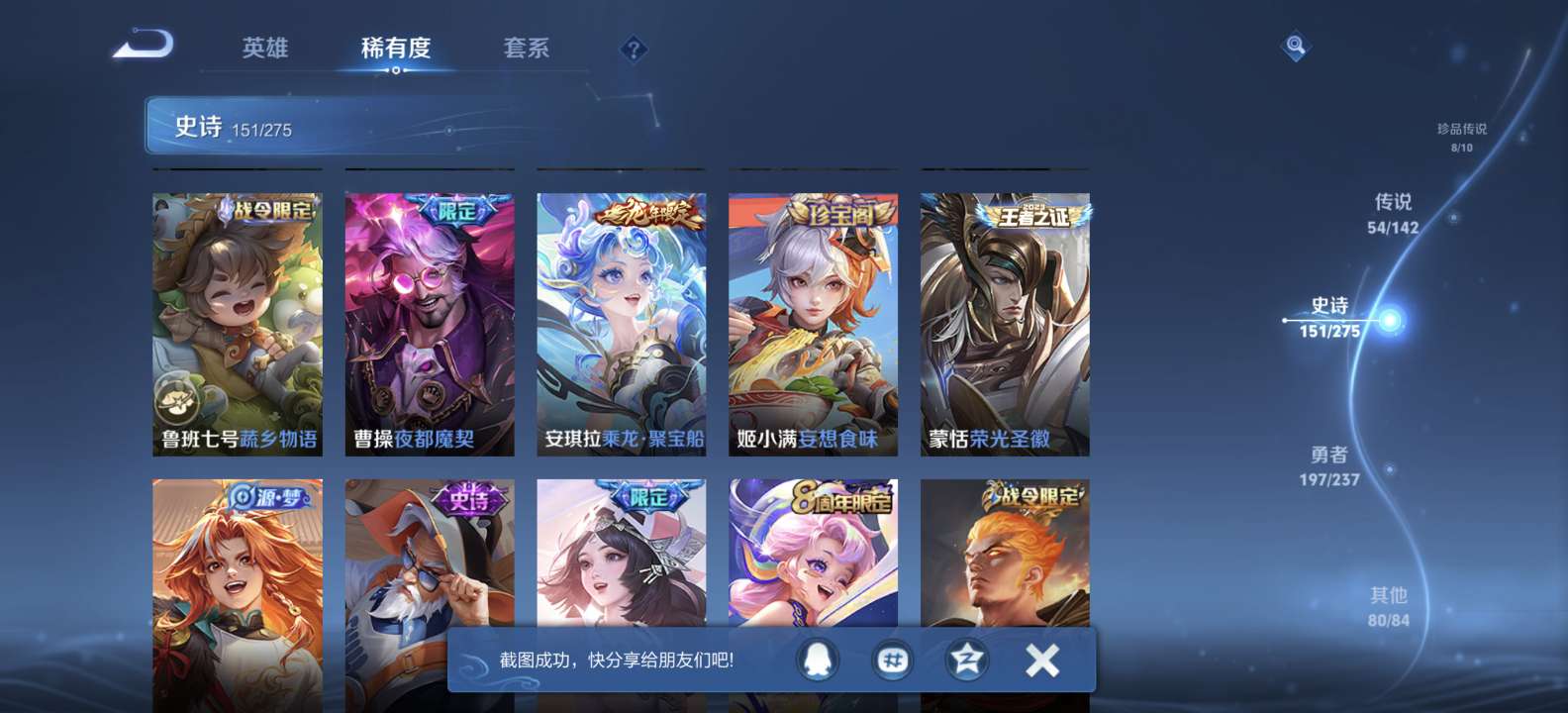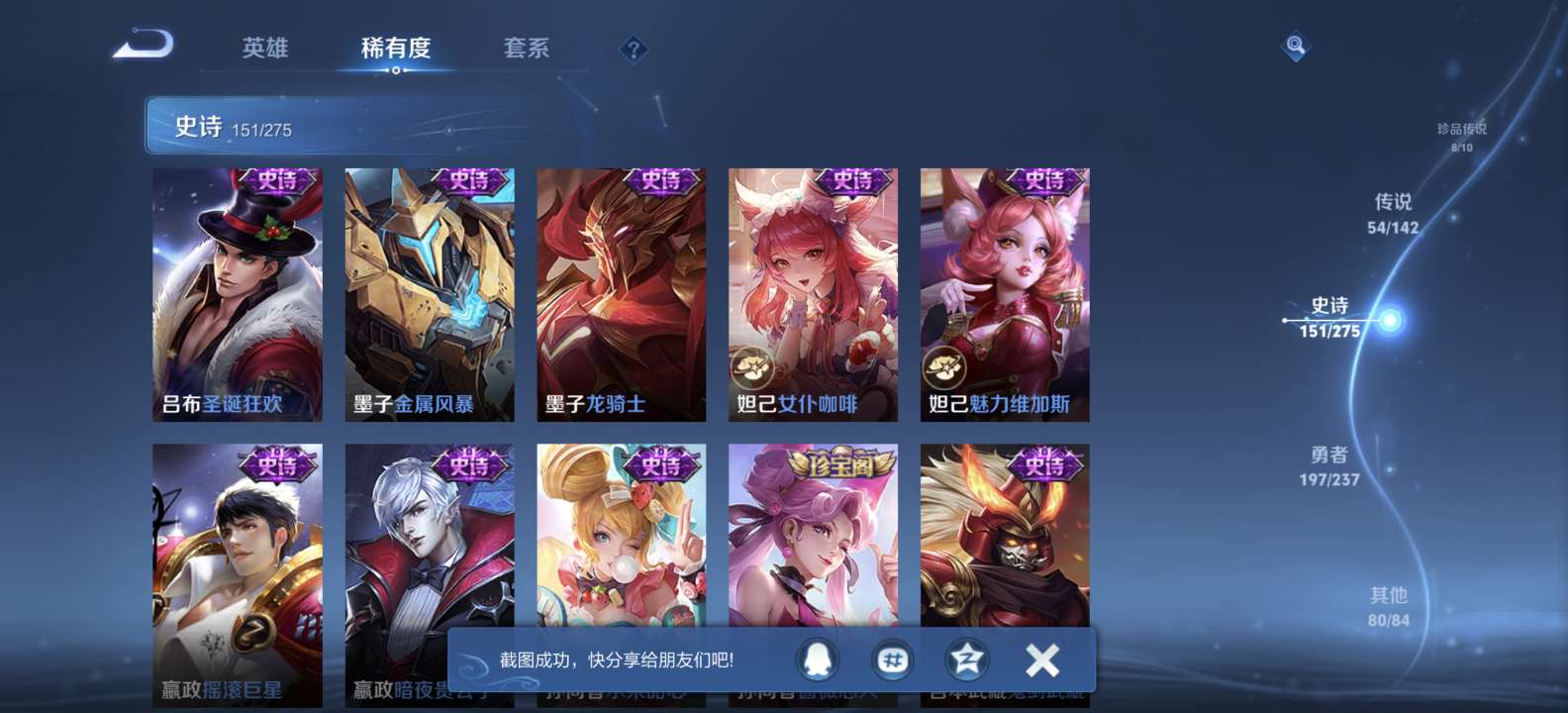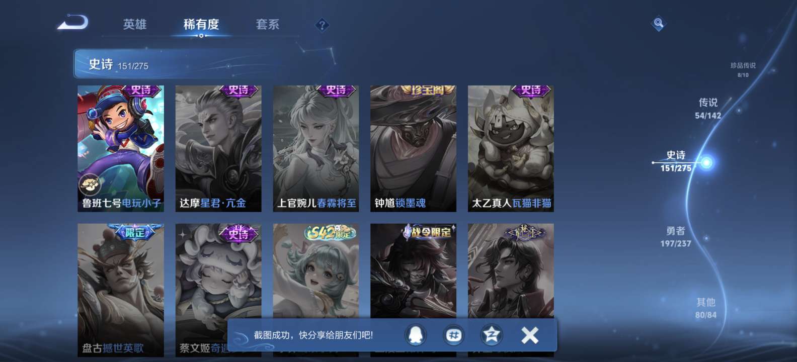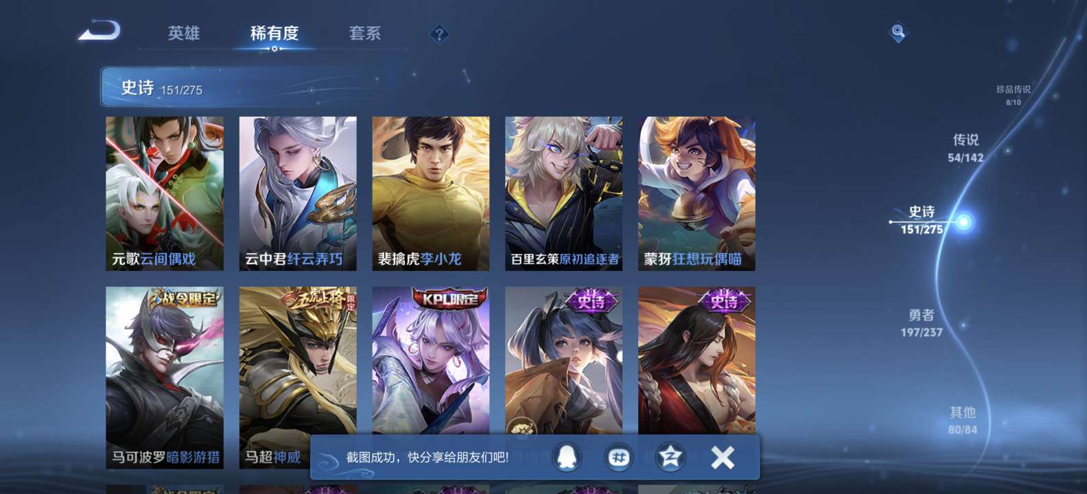 无双v10 500皮肤 珍品无双 3典藏 6无双 8珍品传说 54传说 151史诗