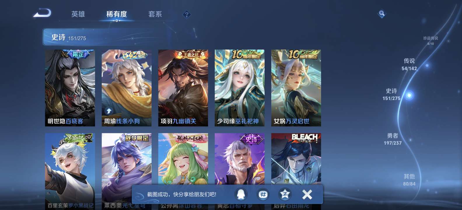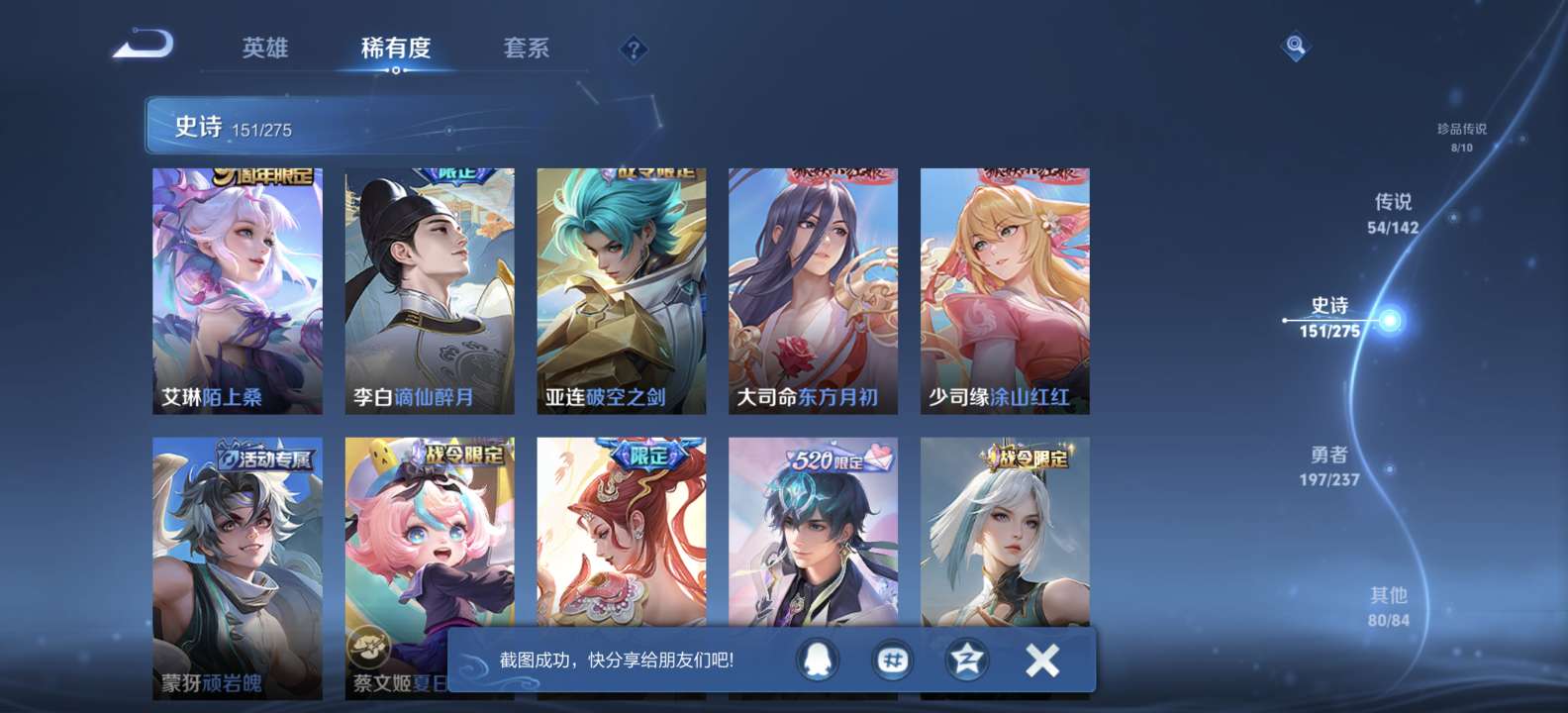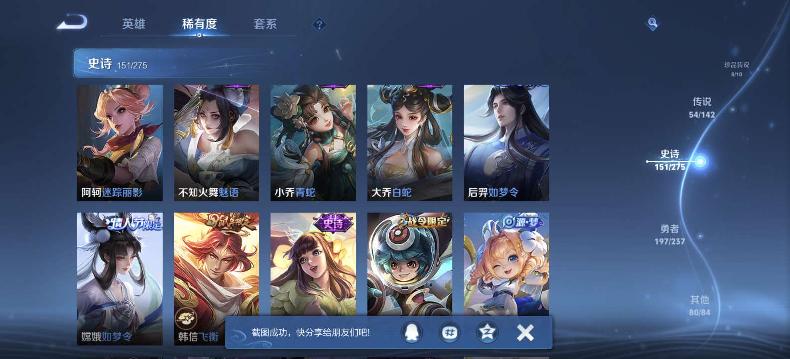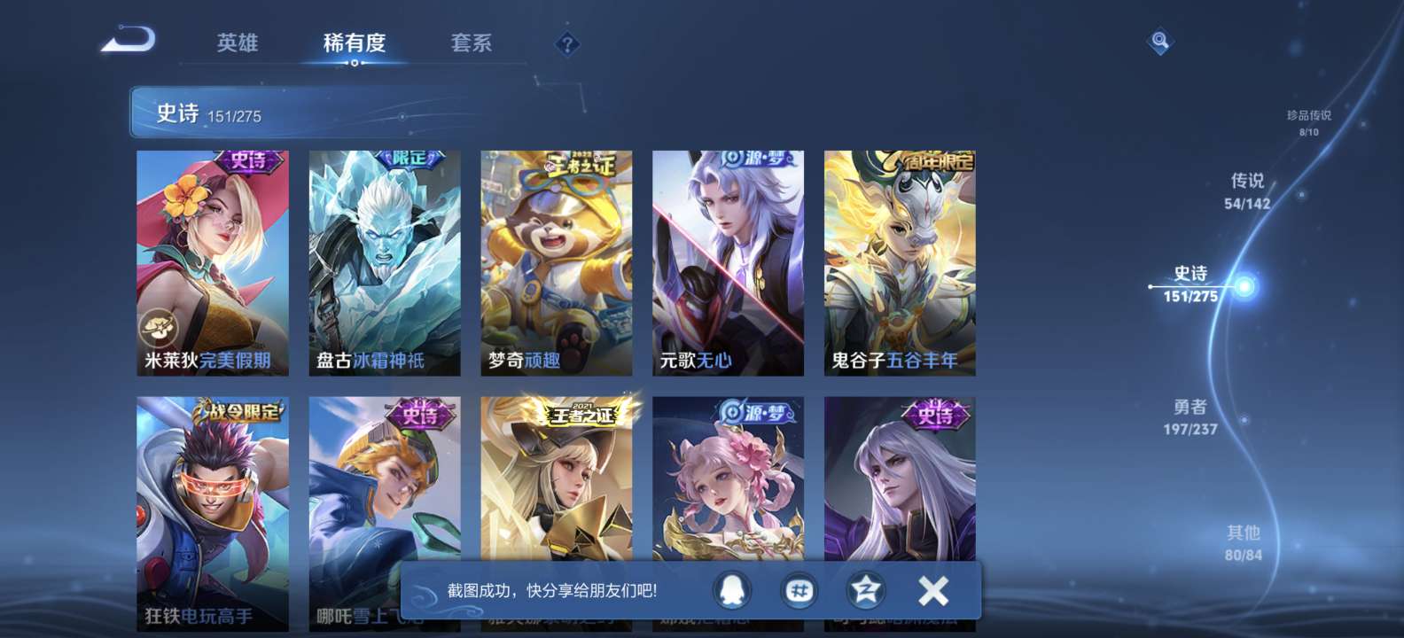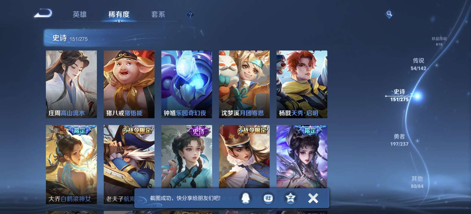 无双v10 500皮肤 珍品无双 3典藏 6无双 8珍品传说 54传说 151史诗
