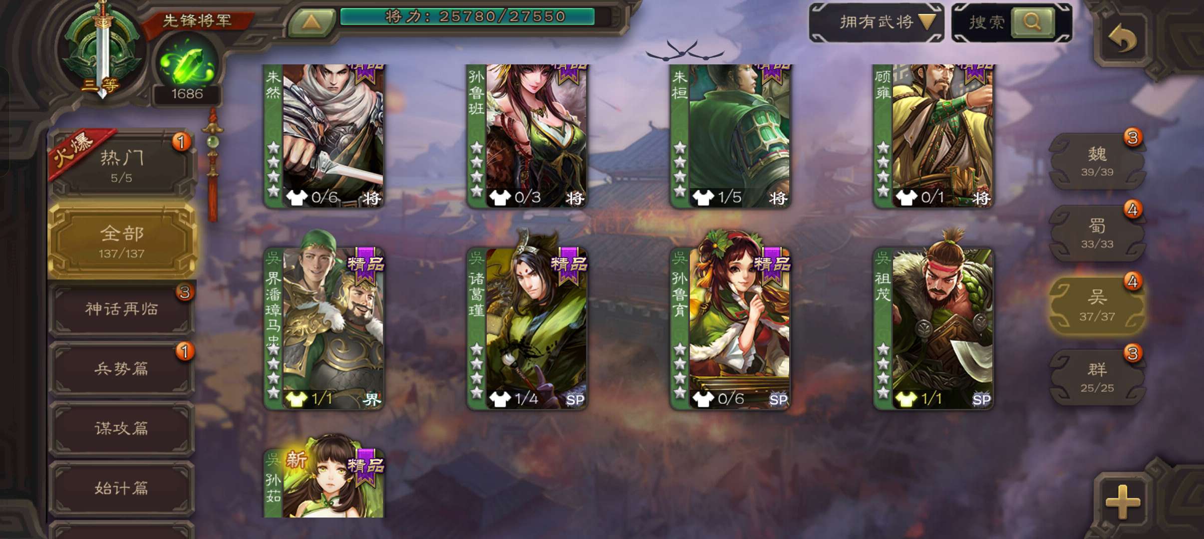 4史诗3神先锋,1680魂762万毛6万豆,神赵云曹婴界曹真沮授,神吕蒙神周瑜霍峻势陈到界权137将