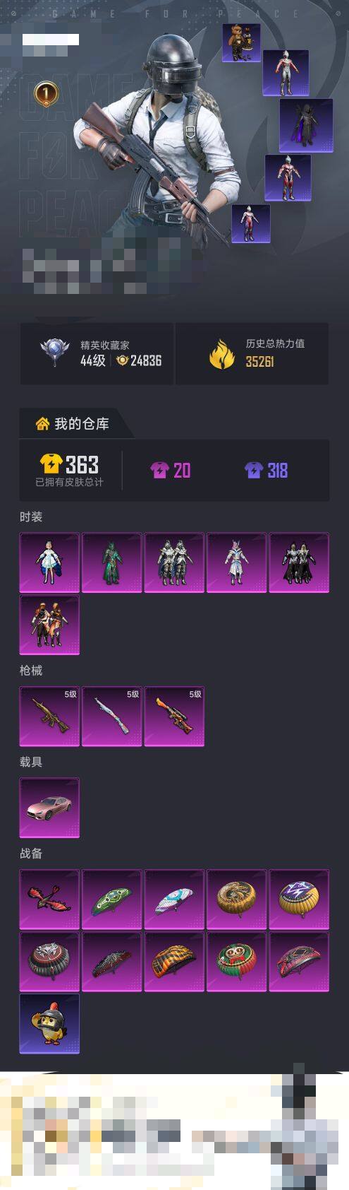 安卓 手Q-6粉装-3特效枪-1载具-1粉色飞行器-35261热力值-1王牌印记-74套装-113枪皮