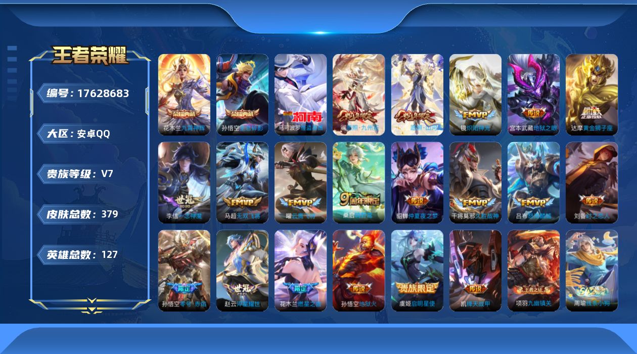 572-[17628683]可二次 贵族8-贵族积分96637-敬我三分、金虎啸春天幕-379皮-2典藏-1珍品传说-19传说-8全皮英雄-4改名卡 安卓手Q346区 营地ID1868194533至尊星耀II【珍品传说皮肤】:怪盗基德【荣耀典藏】:九霄神辉,全息碎影【优质限定皮肤】:无双飞将,至尊宝【传说皮肤】:愿照·九州拓,愿照·山河定,无双飞将,鸣野蒿,久胜战神,时之恋人,地狱之眼,炽阳神光,燃星之曲,怒海麟威,启明星使,云鹰飞将,仲夏夜之梦,一念神魔,淬星耀世,绛天战甲,黄金狮子座,零号·