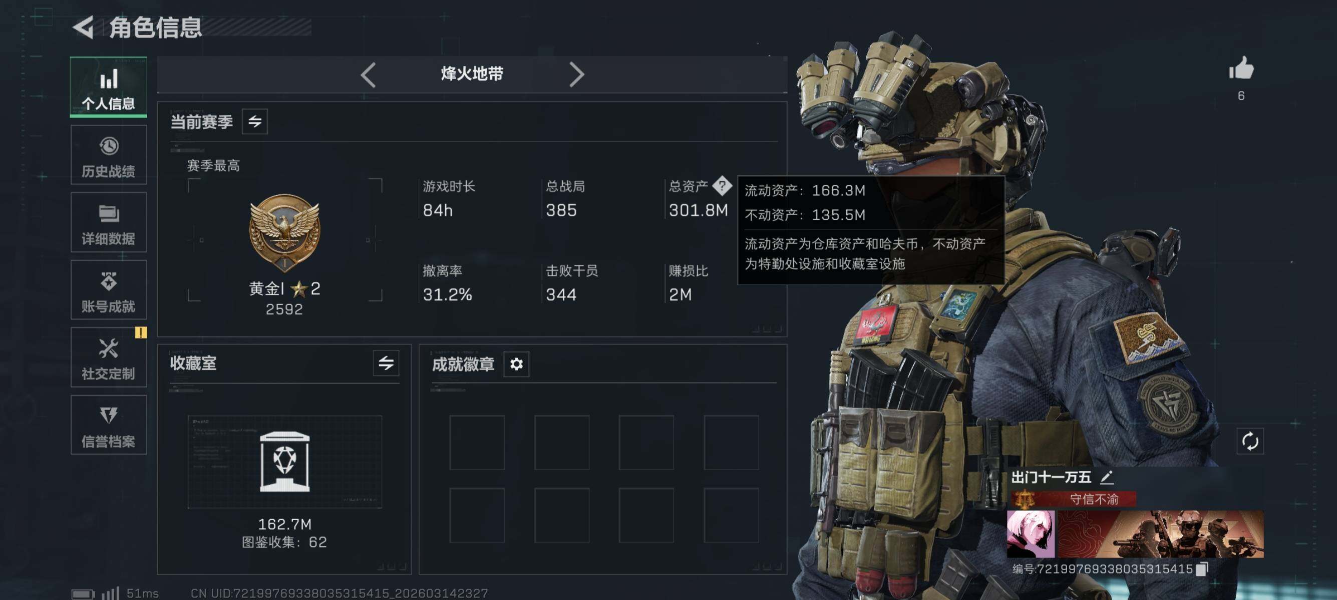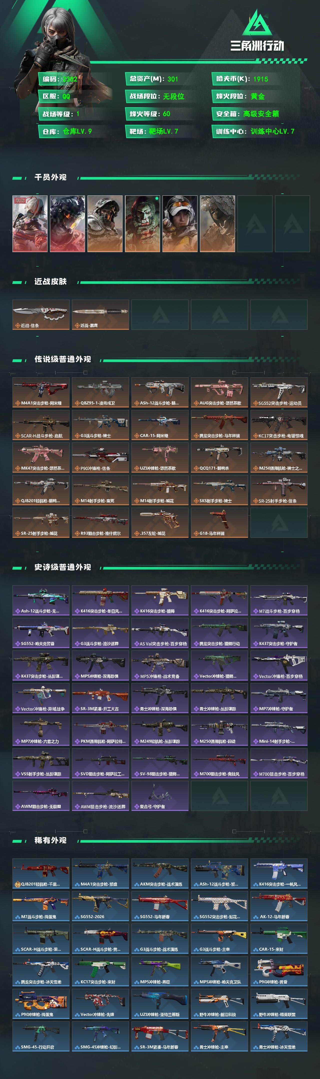 301m总资产-1915k哈伏币-60烽火等级-黄金-1战场等级-无军衔