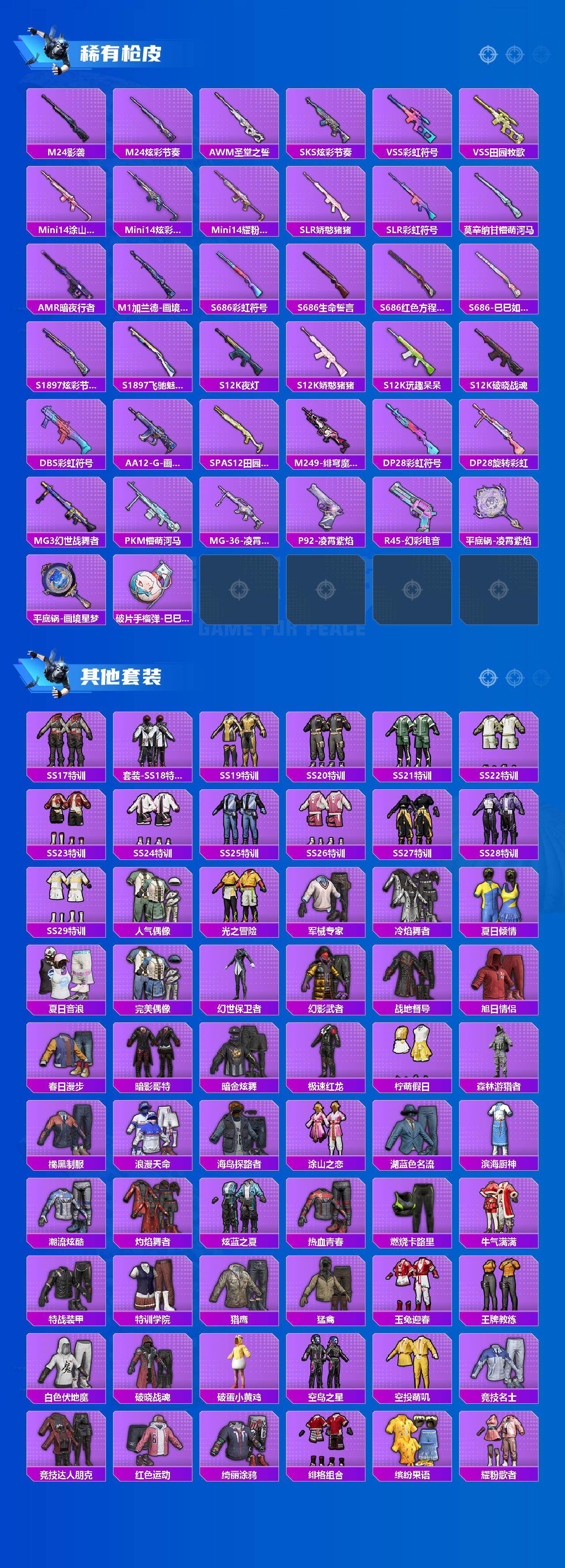 【粉色枪皮等级】:ACE32-萌骑漫游(五级),AKS-74U-森灵之息(五级),Kar98K-巳巳如意(五级),Mk14-福马献瑞(五级),DP-28-豹影疾电(五级)