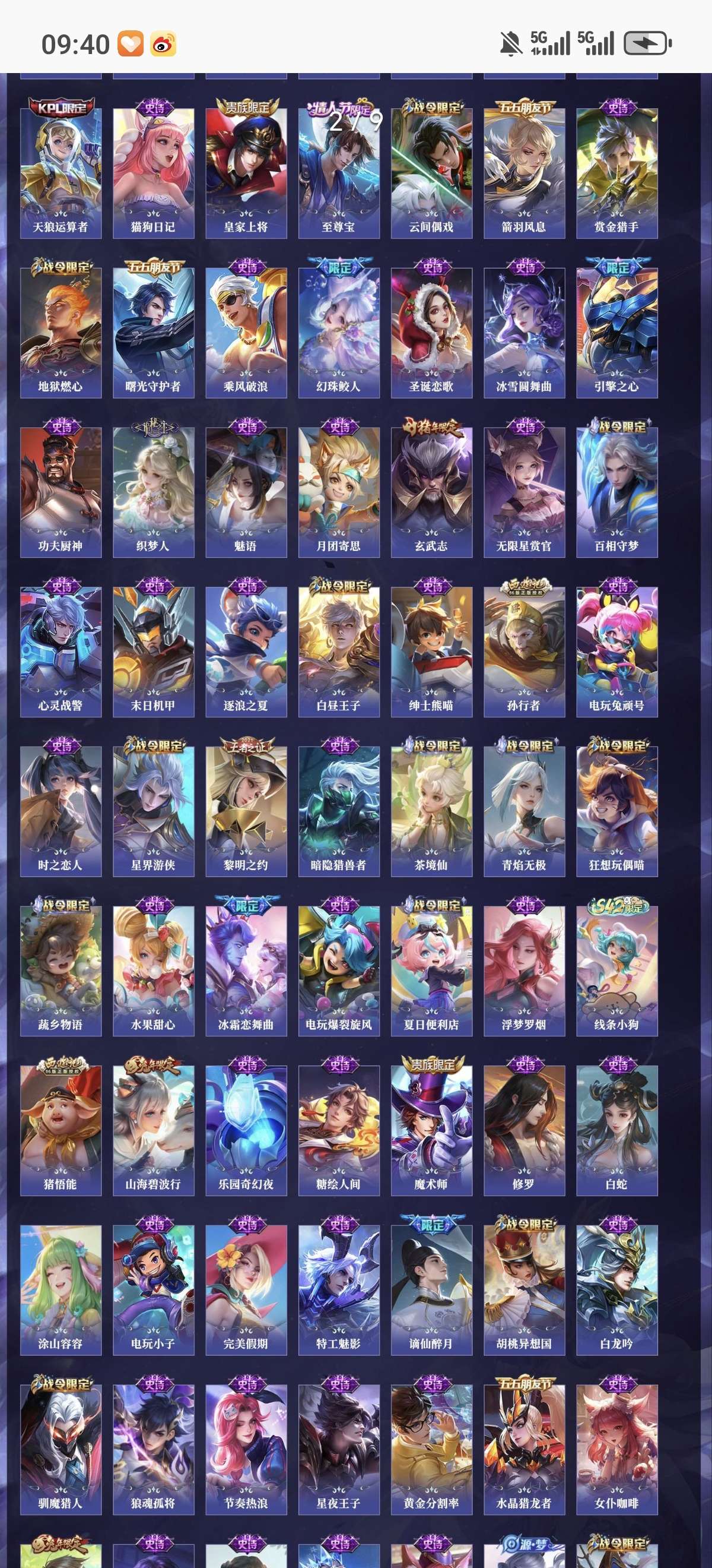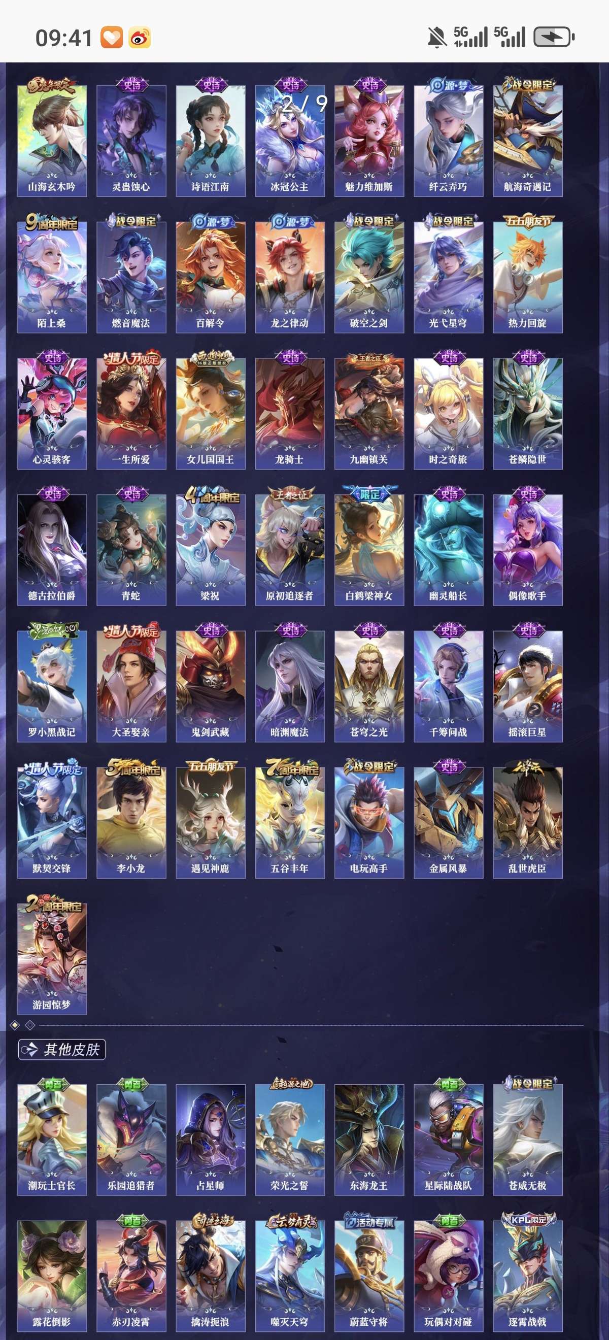 省标5 贵族10 荣耀典藏6 无双5 珍品传说2 星元皮肤3 传说皮肤59