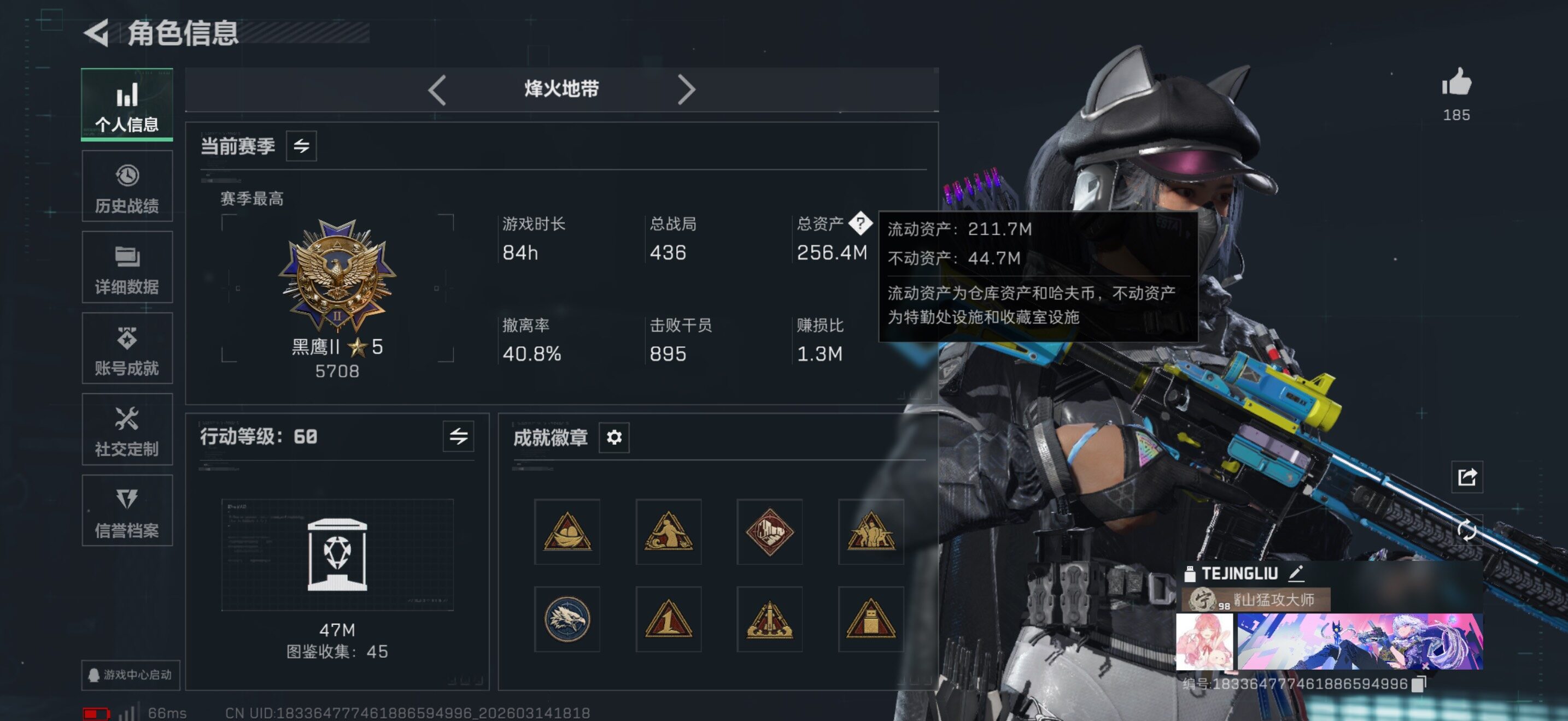 【高氪金土豪号-二红皮+三刀皮+三典藏皮肤】【Q区三端互通】【可二次】YXz9200-特勤处:仓库9级/靶场5级/训练中心7级-总资产256m-哈夫币1022w-烽火等级:60级