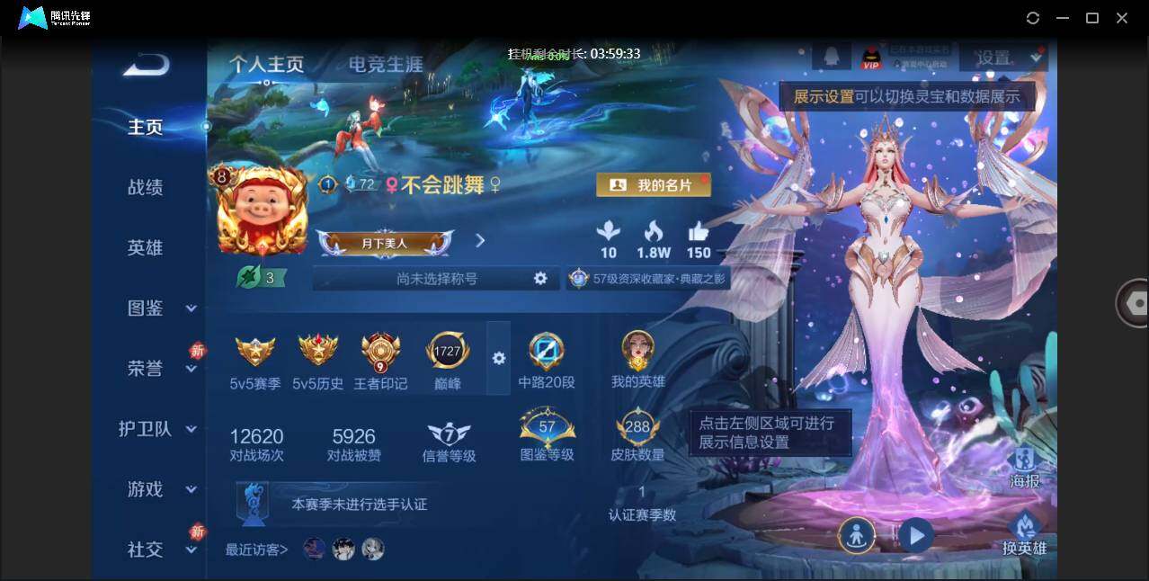 【W6093】精品万场号-万战武则天.中路20段.满铭文(热门皮肤)倪克斯神谕