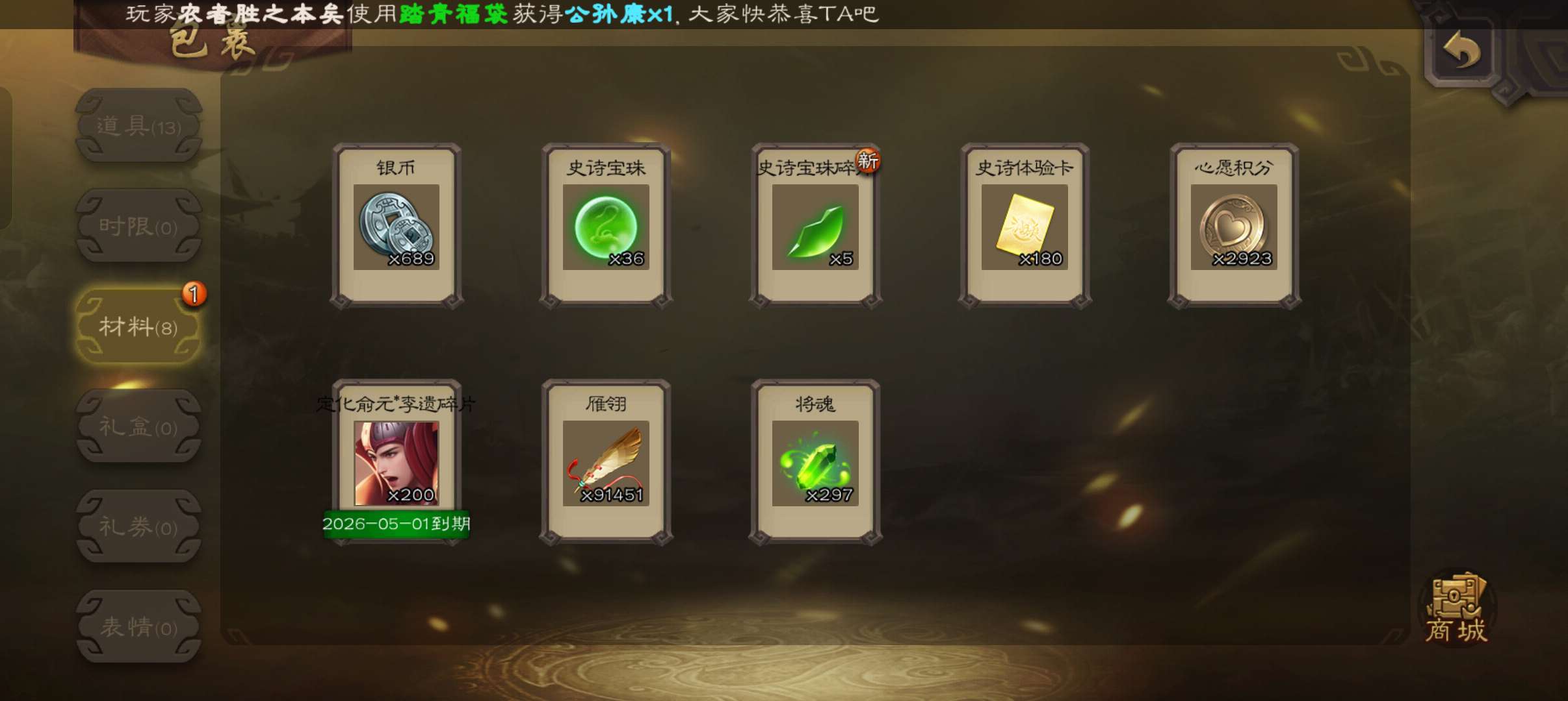 69将超级兵,36宝珠9万羽毛8万豆,谋黄月英,神赵云曹婴星周不疑神刘备杨修5史诗,神吕蒙201令