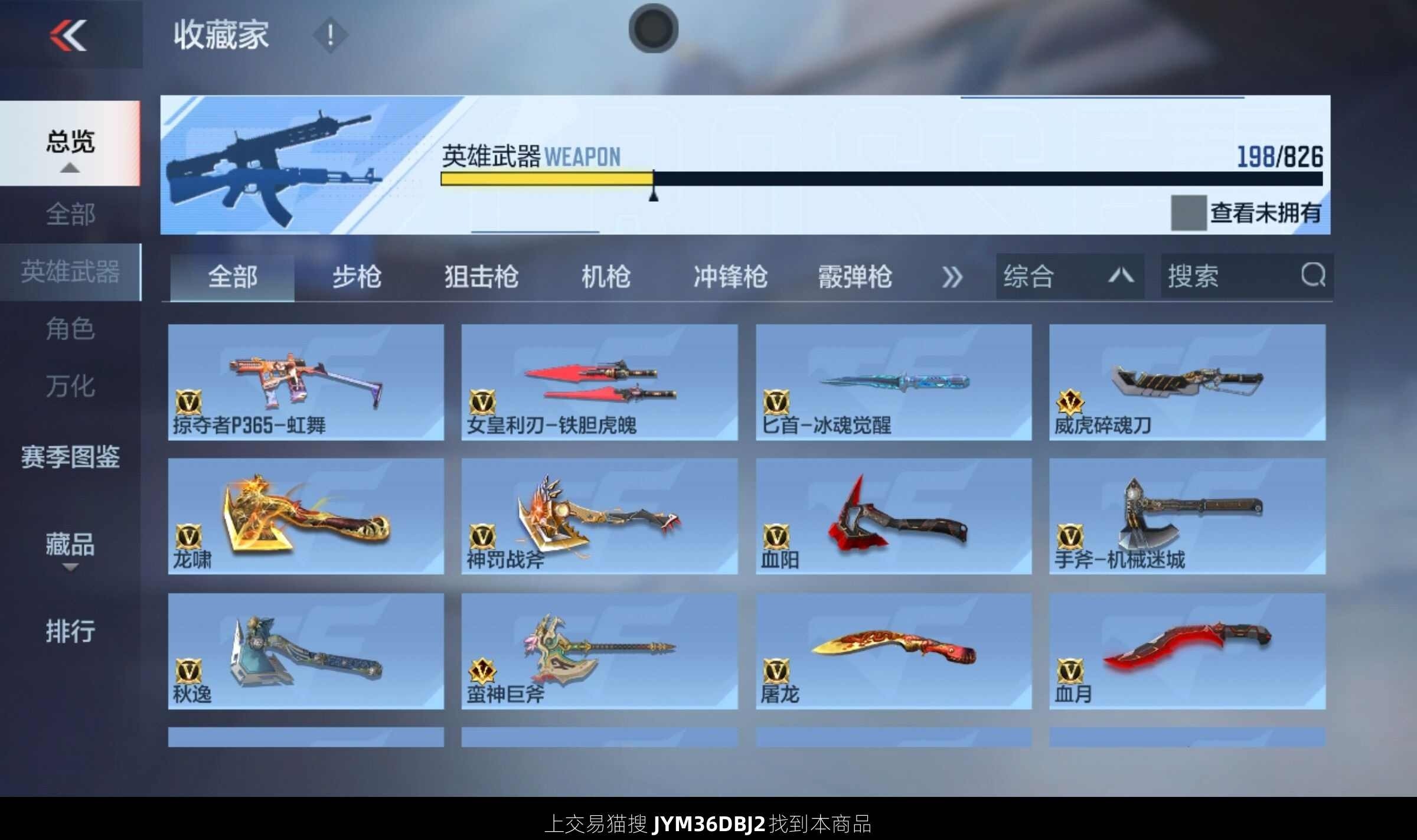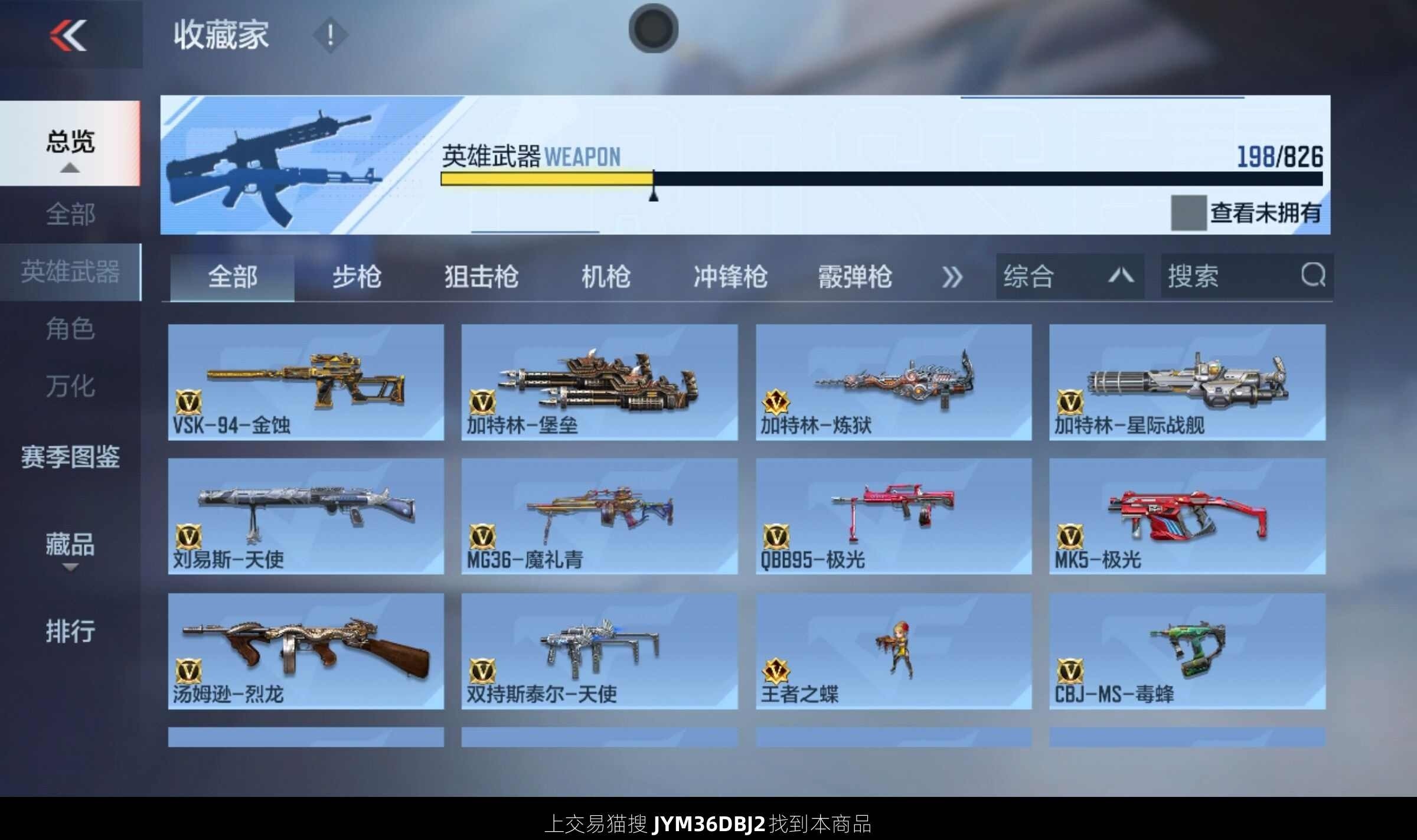 18王者武器 198英雄武器 4英雄角色 371万化