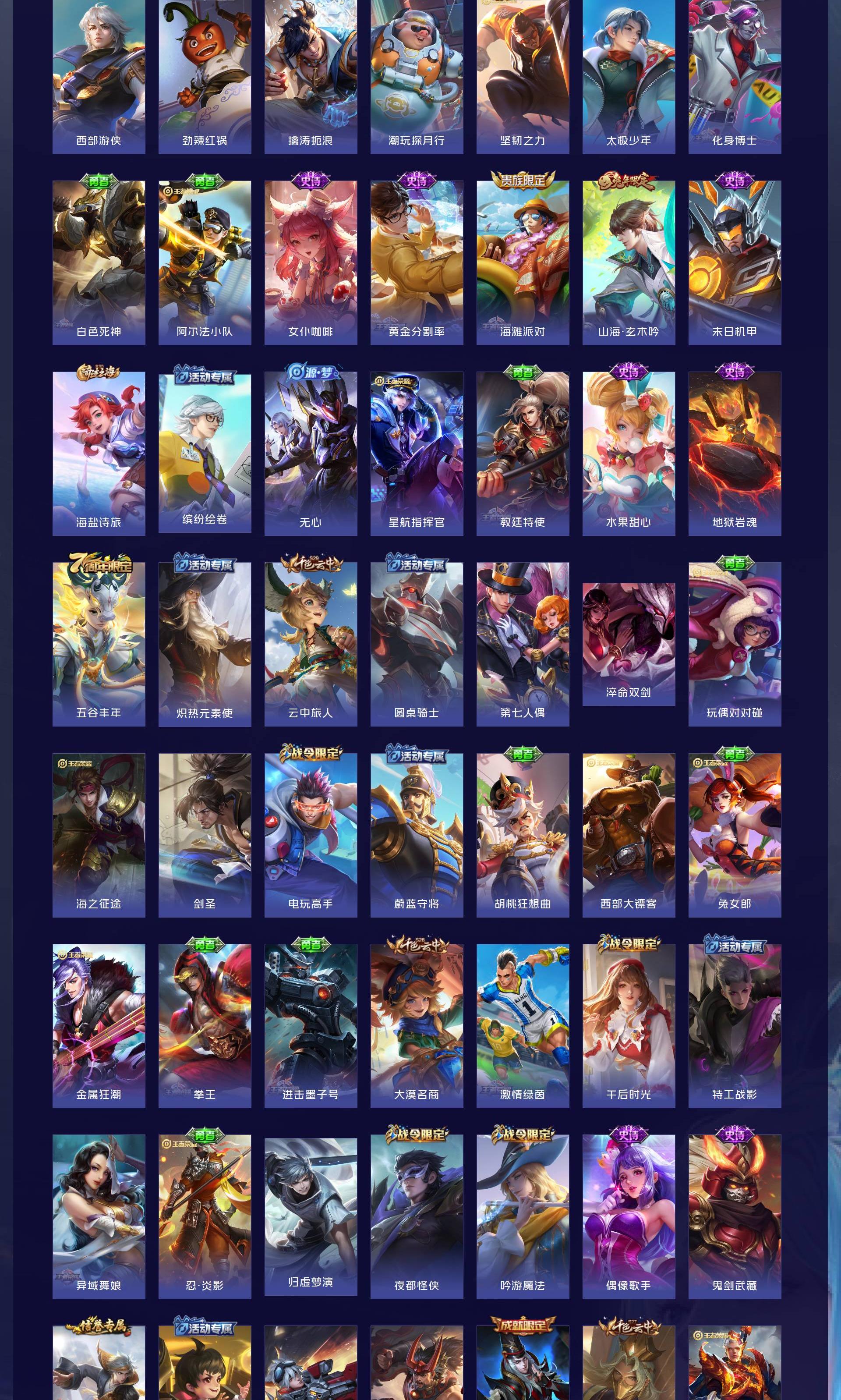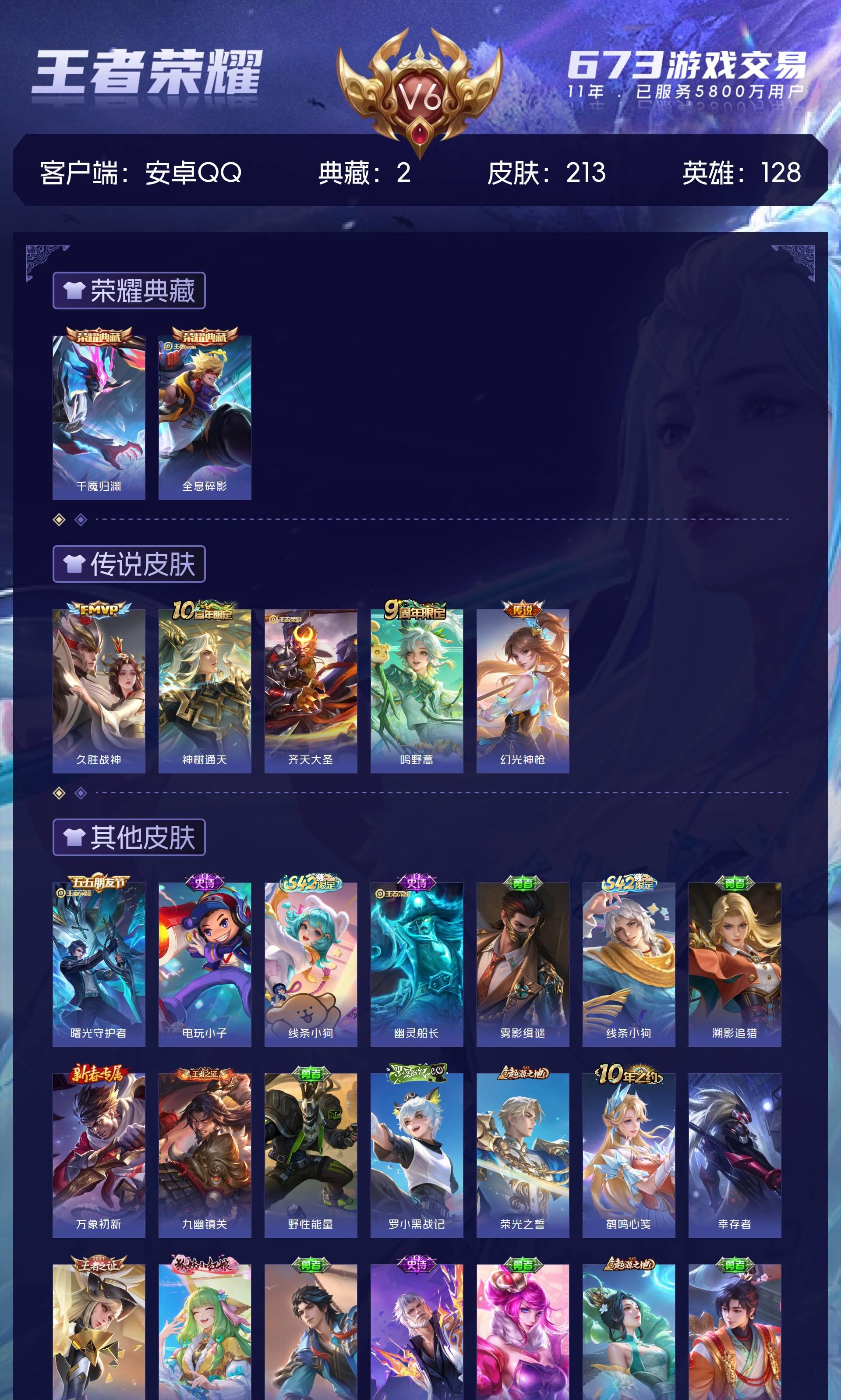 V6 皮肤213 英雄128 无双王者 荣耀典藏2 传说5 其他皮肤213
