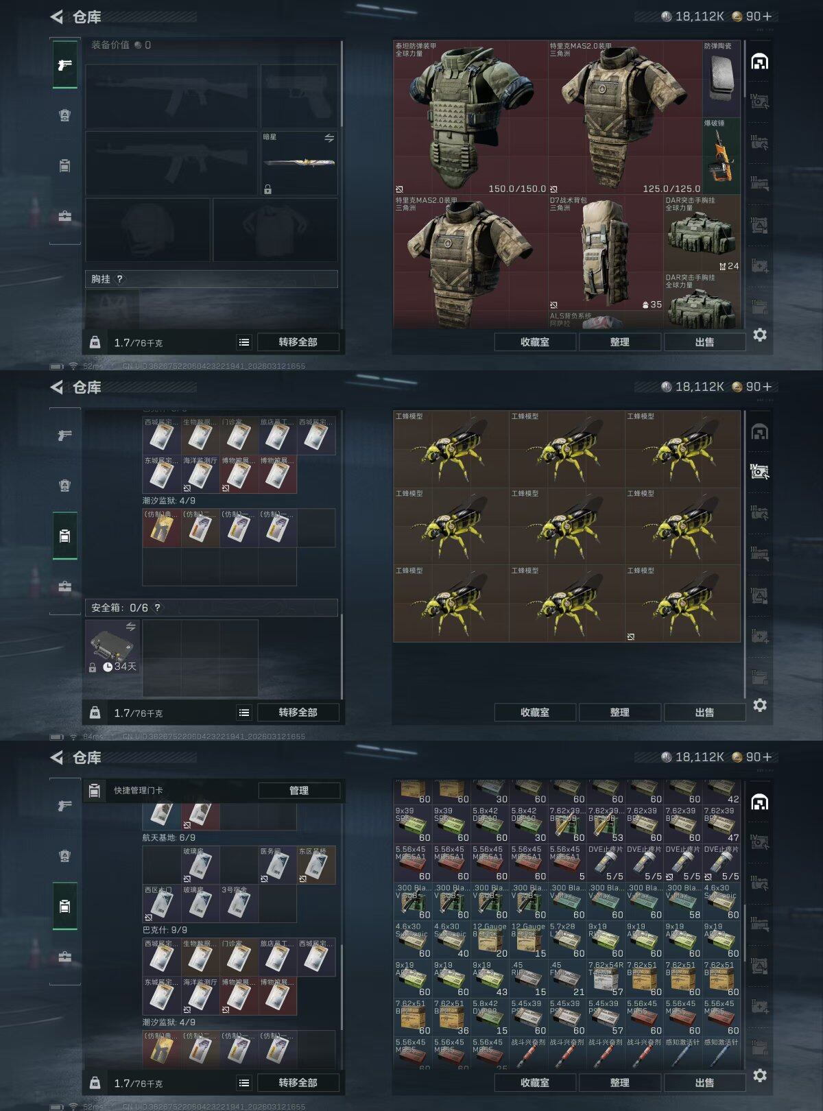 【SJ1356】【暗星带S8高级3X2】60级/总资99M/流资80M/ASVal突击步枪-悬赏令(优品B)刀皮(处刑者+暗星)红狼(蚀金玫瑰+电锯惊魂)乌鲁鲁(荒原猎手)露娜(金牌射手)骇爪(维什戴尔)/7级仓库4级体力3级负重1级潜水