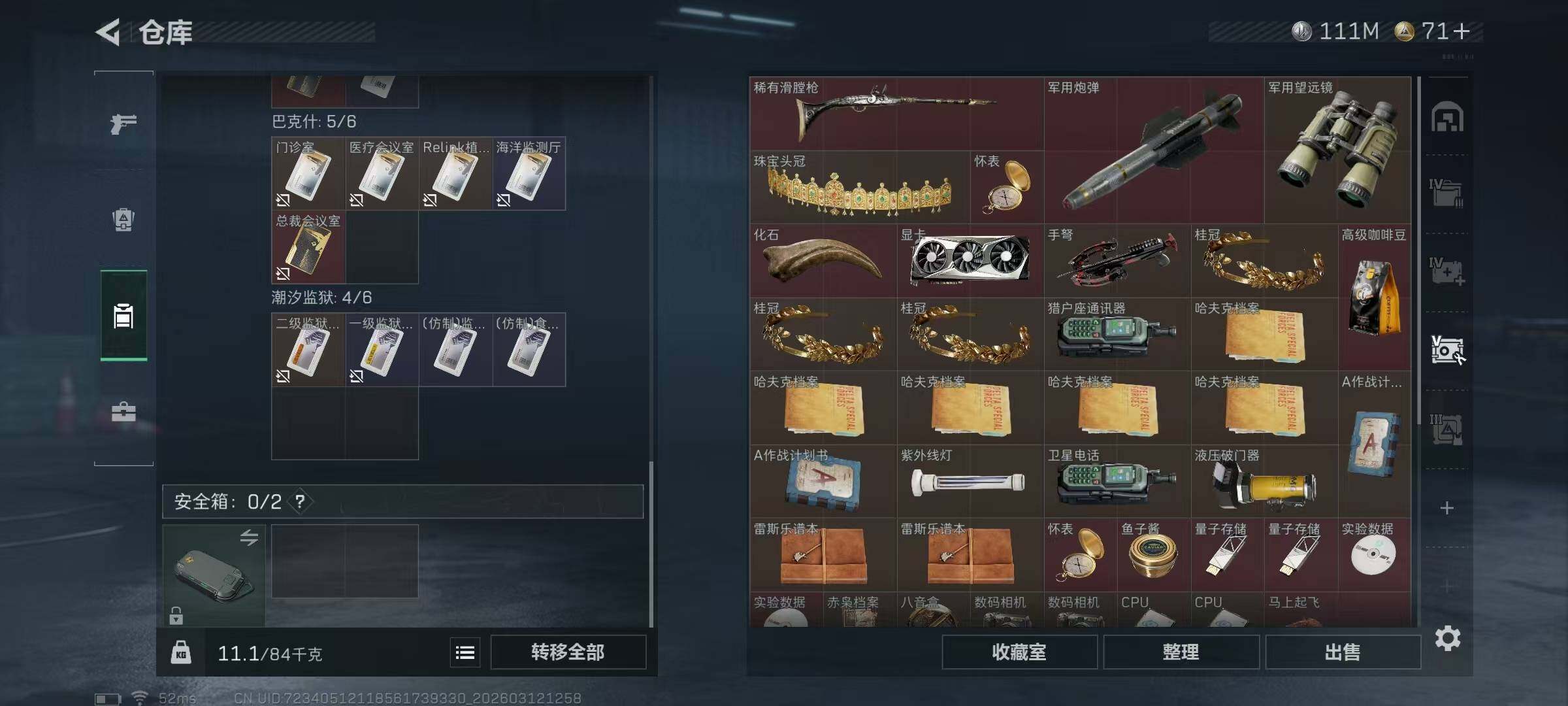 【SJ1352】【纯币111M无封禁】60级/总资276M/流资237M/刀皮(怜悯)/7级仓库6级体力6级负重1级潜水/海洋之泪