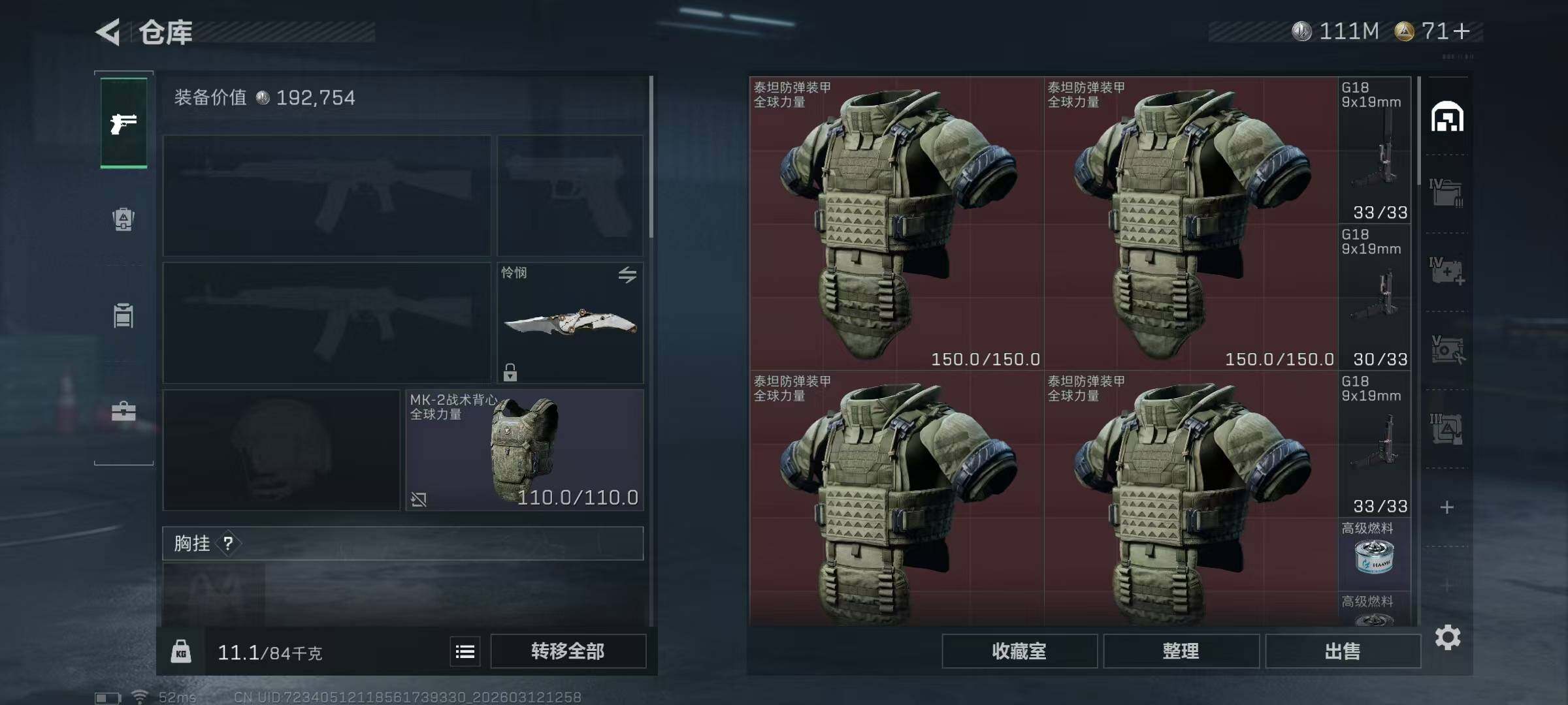 【SJ1352】【纯币111M无封禁】60级/总资276M/流资237M/刀皮