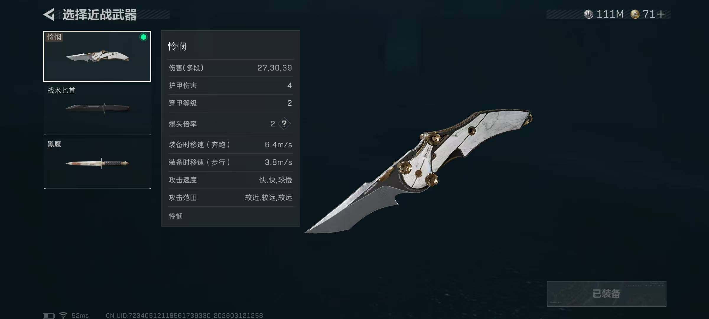 【近战皮肤】:近战-怜悯,近战-黑鹰
