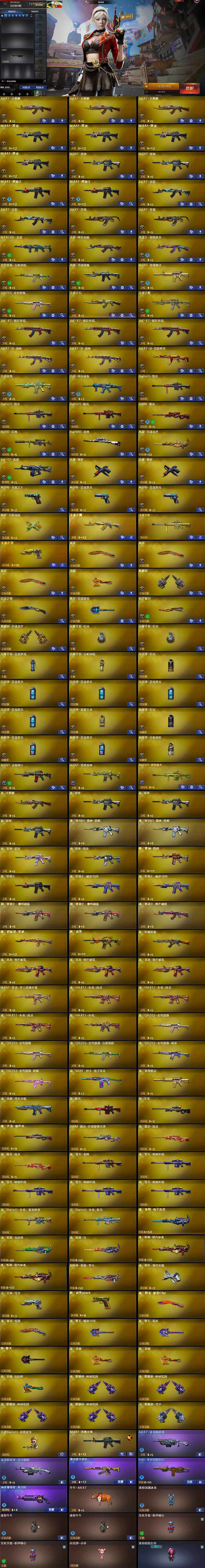 【热门武器】:QBZ03-金色蔷薇,M14EBR-玄武,M200-幻神,金色蔷薇-古蛇迷踪,修罗-古蛇迷踪,白虎-电玩蓝兔,Kar98K-星神,牛牛-AK47,M4A1-黑骑士*2,沙鹰-修罗*2,炽芒蝶刃