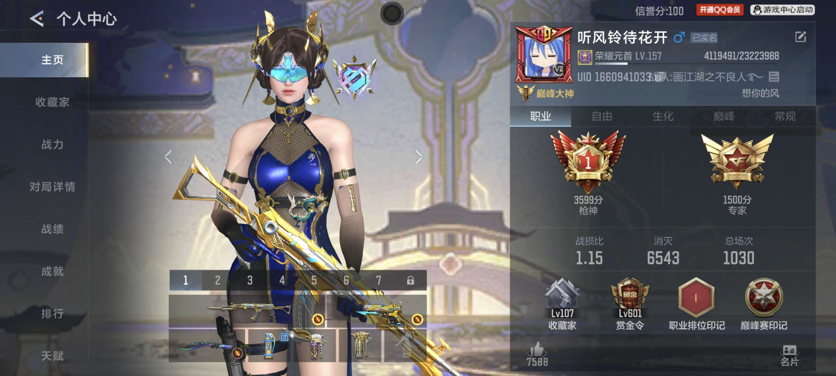 自己玩的号,非常好的一个号子,上过枪神,有二次,钻石45000,钥匙20把,107级收藏家