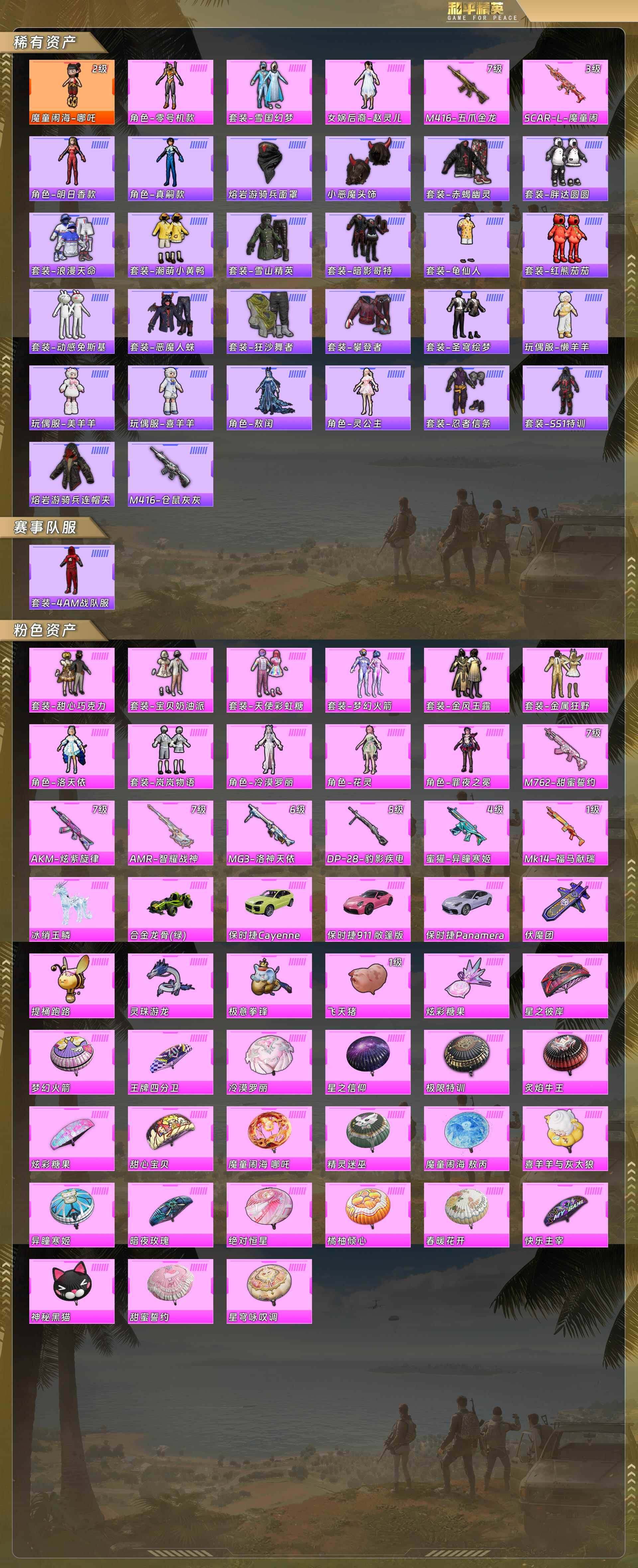 素材号-哪吒2级/零号机款机体服/雪国幻梦/女娲后裔赵灵儿/M4五爪金龙7级/SCAR哪吒3级/明日香款战斗服/真嗣款战斗服/熔岩游骑兵面罩/小恶魔头饰/浪漫天命/老六服/红眼罩/狂沙舞者/SS1特训/M4仓鼠灰灰/梦幻火箭/M762甜蜜誓约7级/AMR智耀战神7级/冰绡玉鳞/合金龙骨(绿)/保时捷(绿)/保时捷(红)/保时捷(紫)(1神装14粉装9粉枪5载具)没战神框 HP6469-6粉色飞行